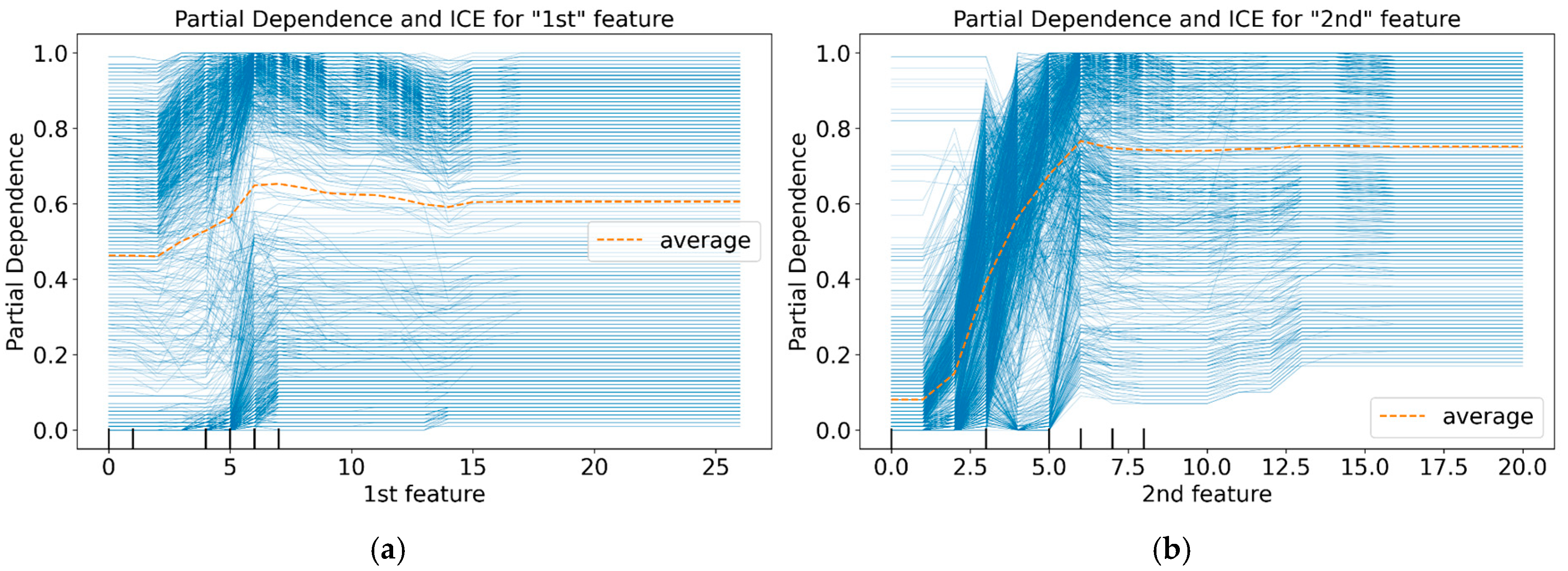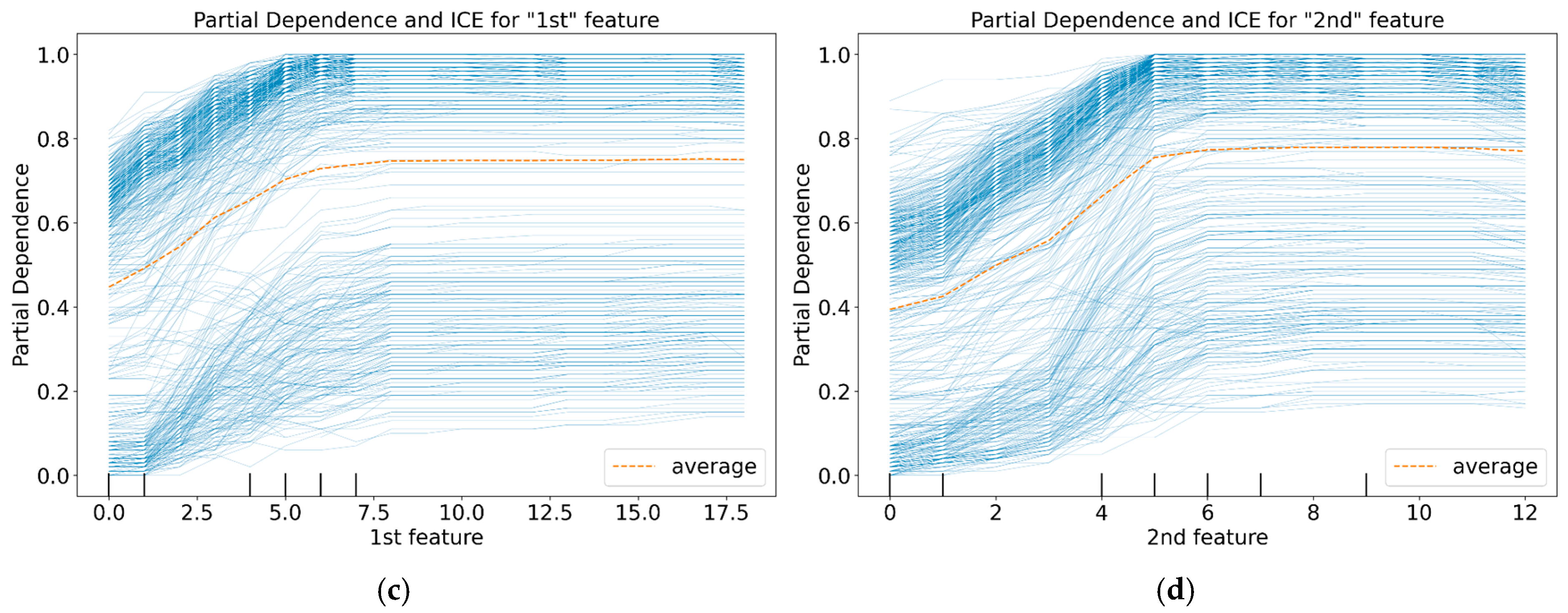 Complementing SHAP, ICE plots and PDPs help understand feature influence. ICE plots show how a prediction for a single instance change as one feature varies, revealing instance-specific effects. PDPs illustrate the average effect of a feature across the dataset, marginalizing over others, offering a global view []. Together, these techniques provide crucial insights into model decision-making, significantly enhancing interpretability and trustworthiness.