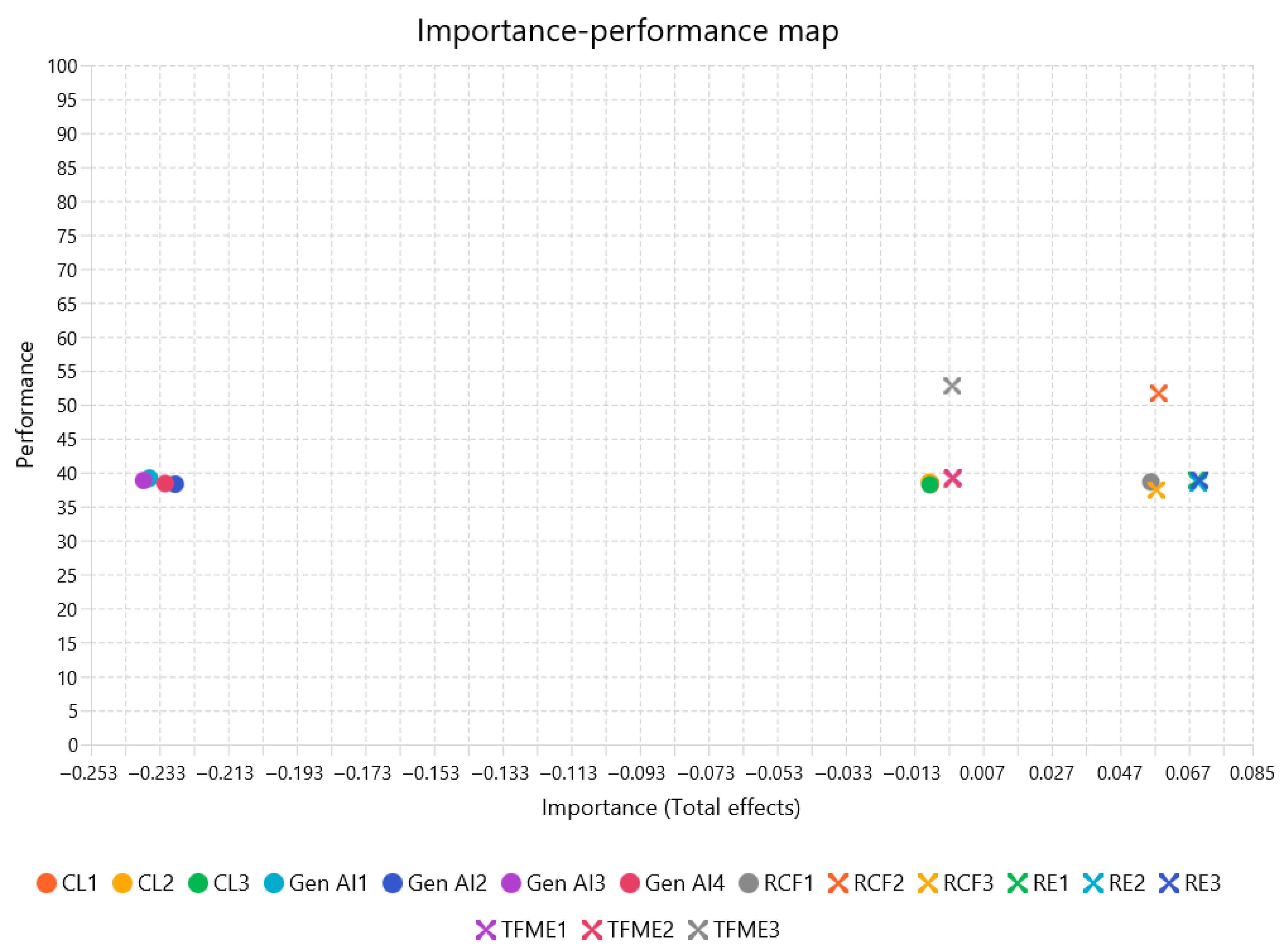 | I rely heavily on AI tools to assist in data analysis or content generation. | Gen AI3 | −0.238 | 38.838 |
