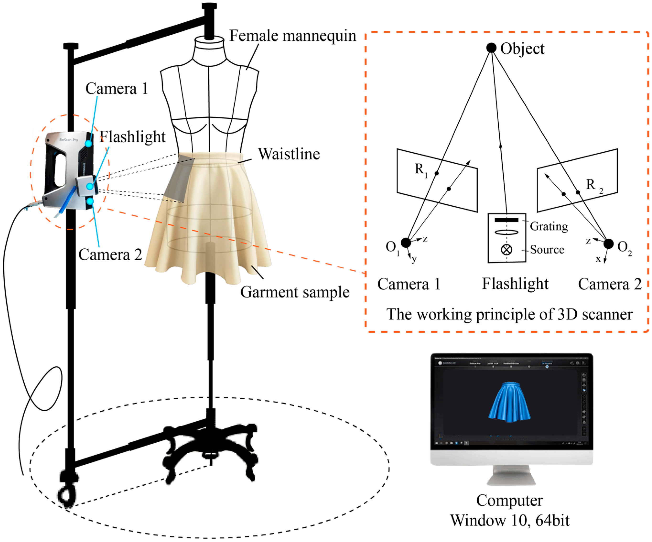 - Špelic, I. The current status on 3D scanning and CAD/CAM applications in textile research. Int. J. Cloth. Sci. Technol. 2019, 32, 891–907. [Google Scholar] [CrossRef]
