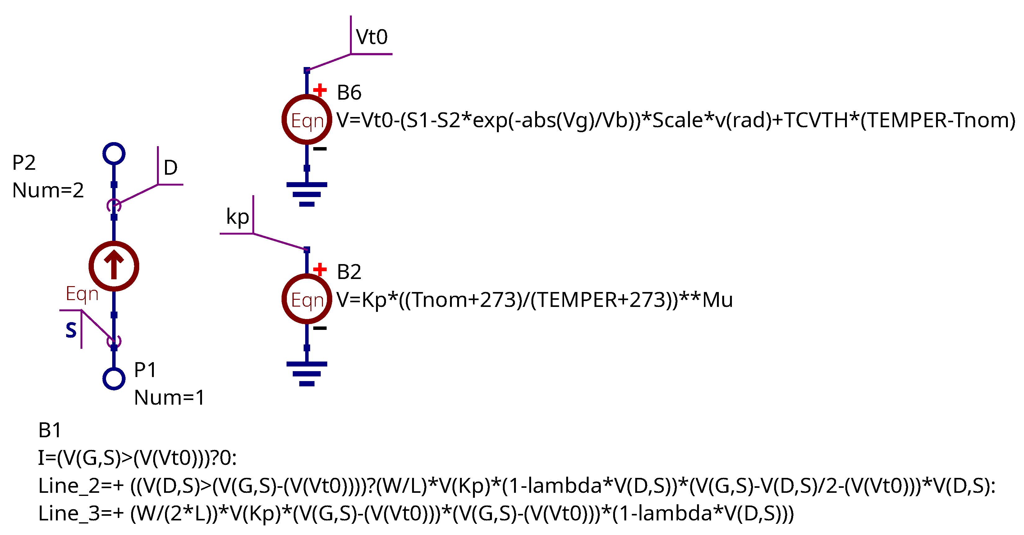 - Using SPICE subcircuits (.SUBCKT directive) or macromodels [27]. The compact model is assembled as a set of primitive devices (resistor, capacitor, inductor) and behavioral (B-type) sources representing current on voltage or voltage on current dependencies. This method is supported by every SPICE simulation kernel, but complex models may have a poor performance, because the model parsing is required every time when netlist is loaded.