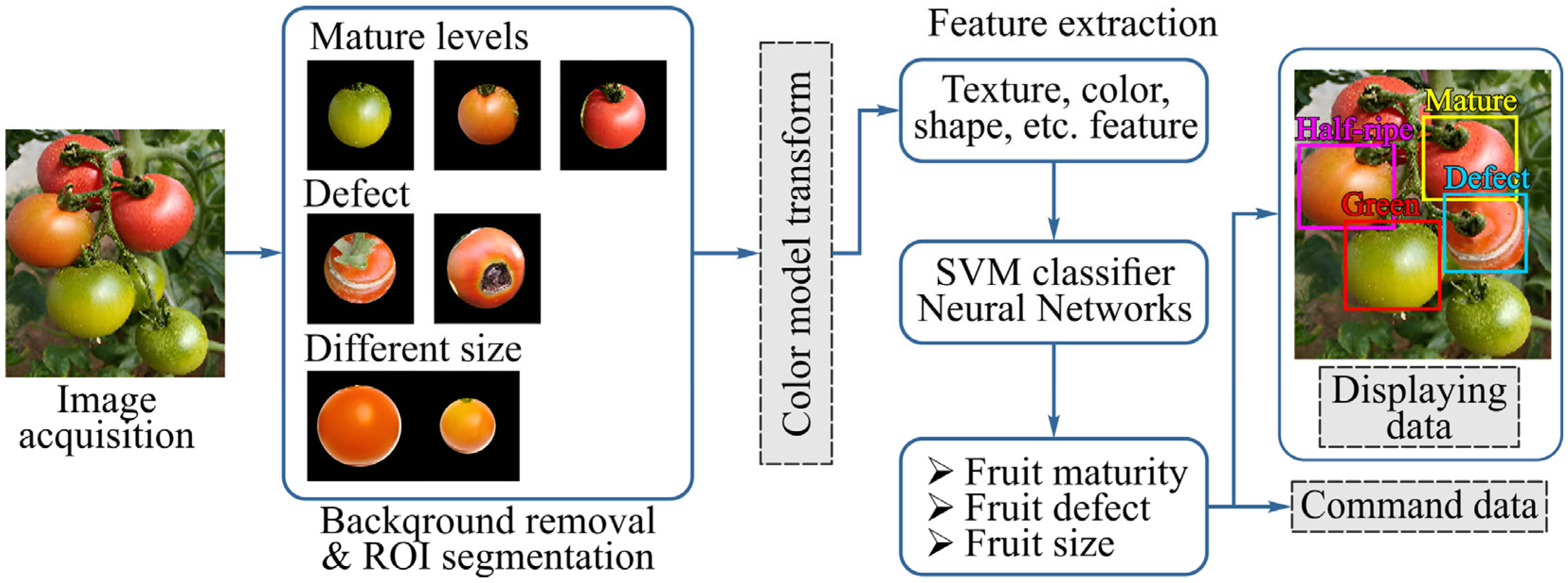 - Tempelaere, A.; De Ketelaere, B.; He, J.; Kalfas, I.; Pieters, M.; Saeys, W.; Van Belleghem, R.; Van Doorselaer, L.; Verboven, P.; Nicolaï, B.M. An introduction to artificial intelligence in machine vision for postharvest detection of disorders in horticultural products. Postharvest Biol. Technol. 2023, 206, 112576. [Google Scholar] [CrossRef]