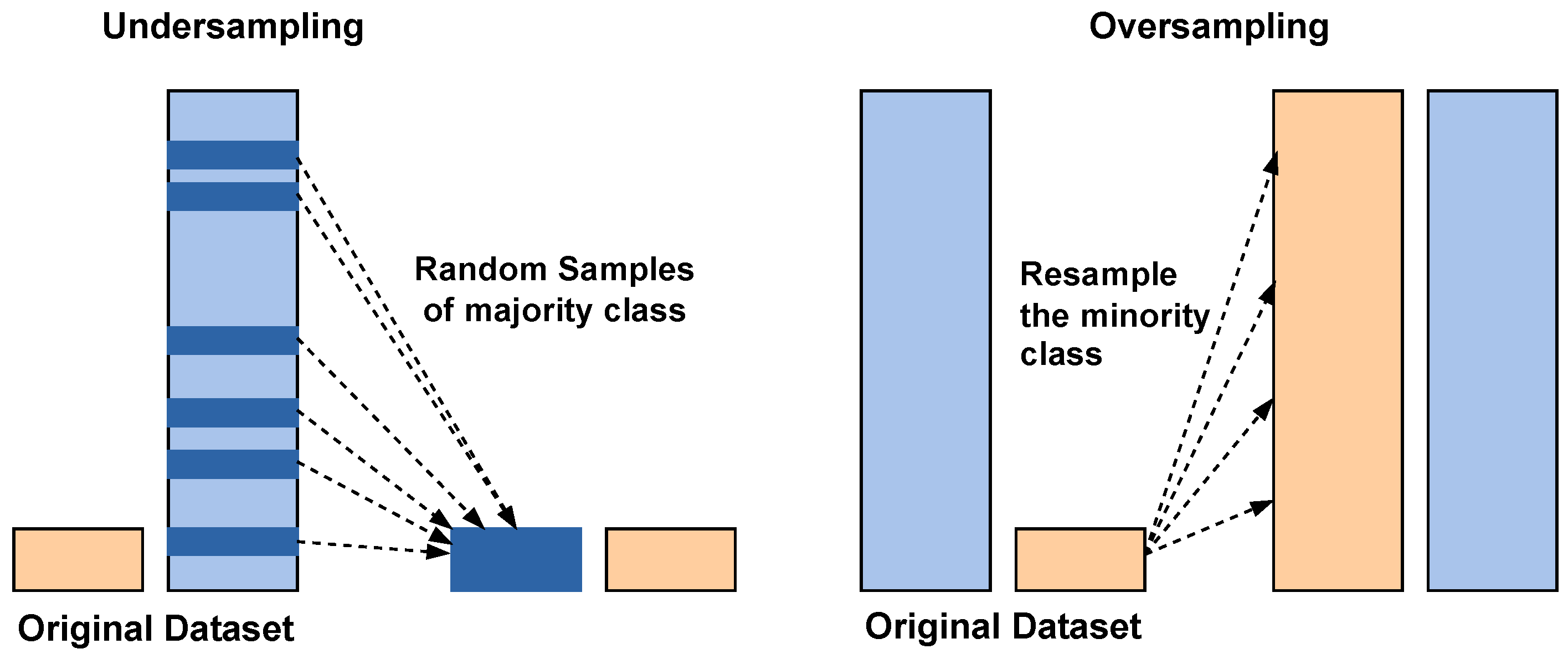 To reduce the class imbalance problem of the stone class, which leads to more misclassifications, SMOTE is applied. A basic working principle of the SMOTE is illustrated in the