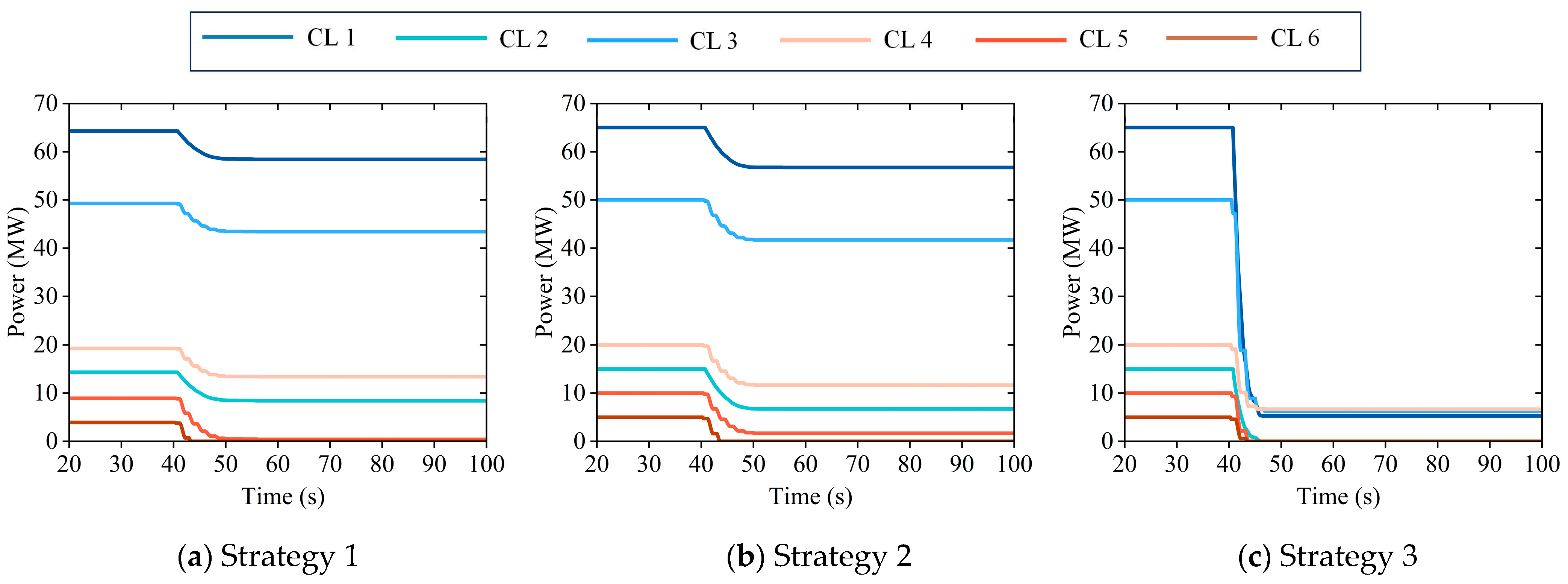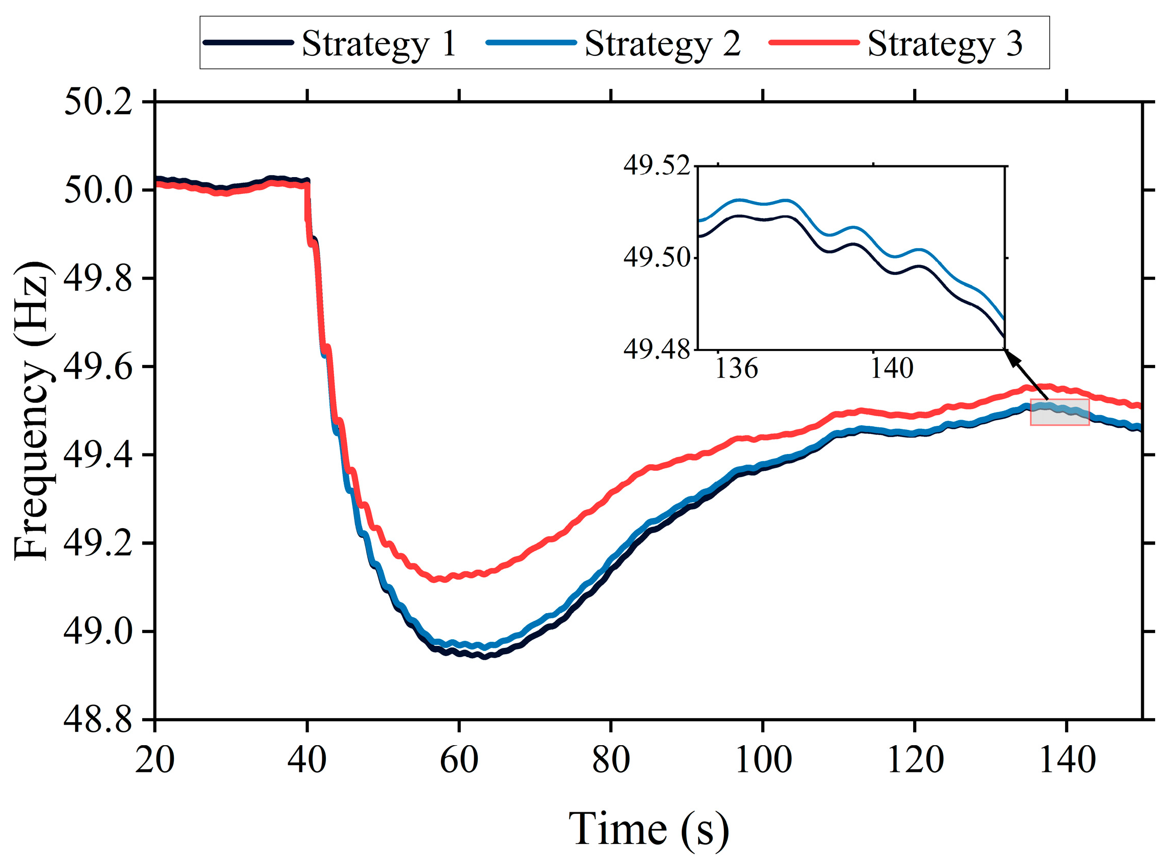 - Strategy 3: TCLs participate in frequency regulation with a dynamic droop coefficient and a differentiated deadband.