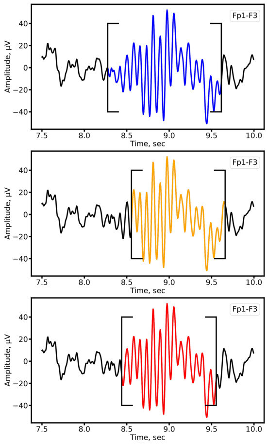 Ten-minute segments of stage N2 non-REM sleep, characterized by rhythmic spindle activity (9–15 Hz) in fronto-central and vertex regions, were selected for manual annotation. Spindle markings were independently reviewed by two EEG experts with more than five years of experience. In cases of uncertainty, the final boundaries were determined through consensus.