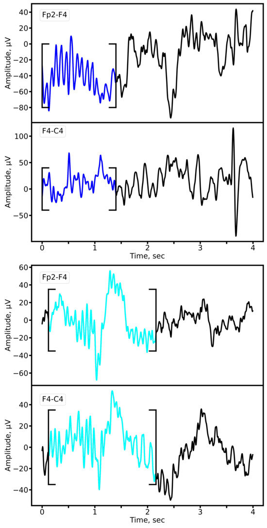 In this study, we perform a retrospective analysis of video-EEG recordings obtained from the archive of the Video-EEG Laboratory Genomed Ltd. (Moscow, Russia). Recordings were acquired during both wakefulness and sleep, with functional activation tests included when clinically indicated. The monitoring duration for each subject ranged from 3 to 10 h. EEG was recorded using the NeuroScope system (BIOLA LLC., Moscow, Russia), with electrodes positioned according to the international 10–20 system.