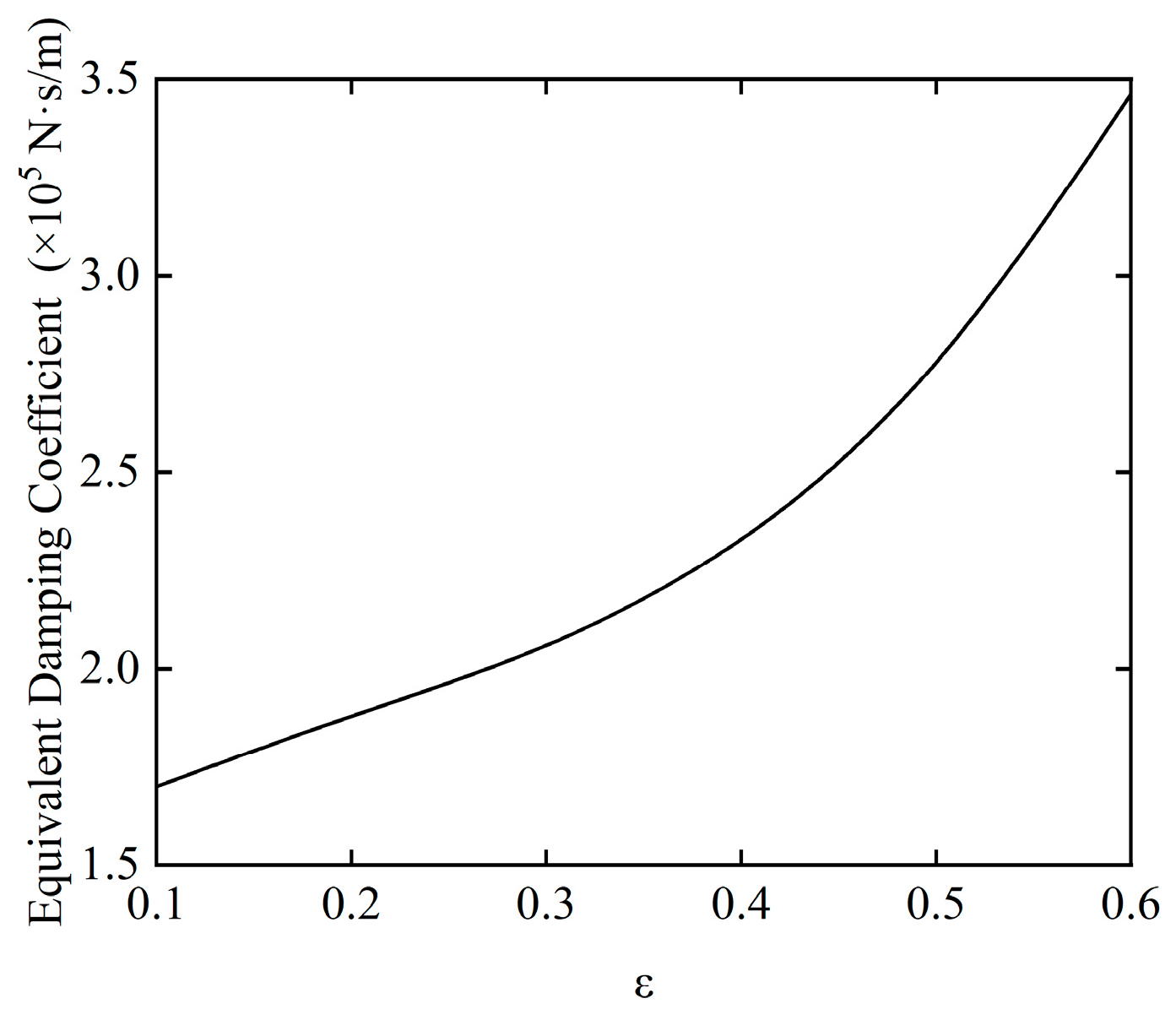 8 N/m, with an increase factor of 1684.21%. The equivalent damping coefficient exhibits a gradual increase within the same eccentricity variation range, rising from an initial value of 1.7 × 10
