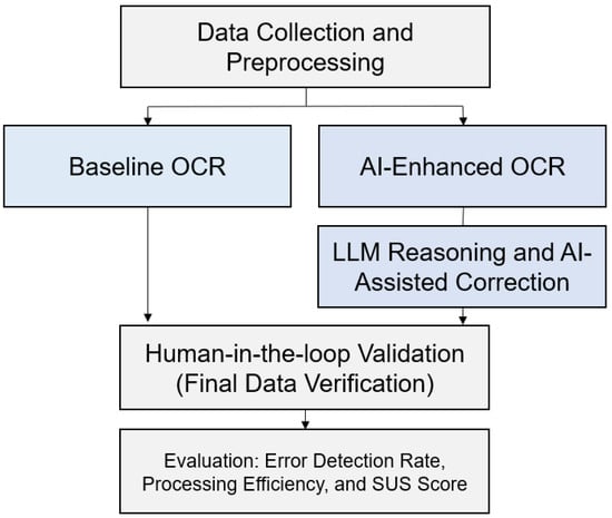 Experimental design and evaluation workflow of the AI-enhanced OCR system.