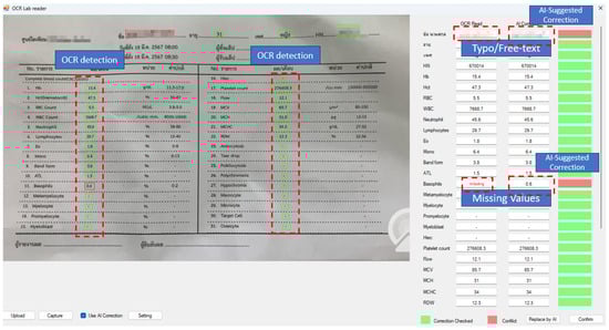 The findings of this study are consistent with previous research that highlights the limitations of traditional OCR systems and the benefits of integrating AI for improving accuracy in clinical documentation. Prior studies have shown that conventional rule-based OCR systems are prone to common errors such as decimal misplacements and misinterpretation of numeric values, which can lead to clinically significant inaccuracies [36,37]. Our results demonstrate that by incorporating AI-driven anomaly detection, the system was able to correct errors automatically, particularly in the Out-of-Range category, reducing risks to patient safety and improving data quality. Similar improvements were reported by [38], who emphasized the role of machine learning models in identifying and correcting inconsistent or erroneous health data in electronic health records (EHRs). These outcomes also align with the broader literature on data quality management in healthcare, which identifies completeness, accuracy, and consistency as key dimensions for reliable EHR data [31].