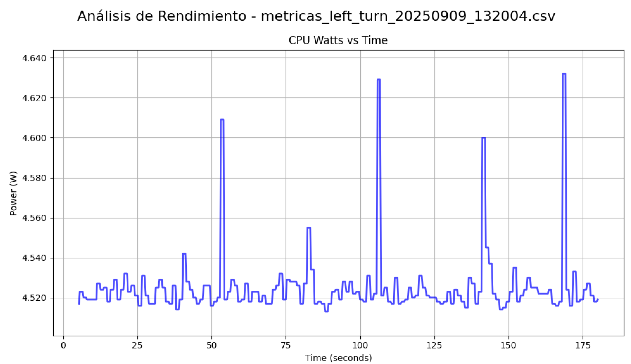 Power consumption of the embedded system during a continuous 180 s experiment (watts).