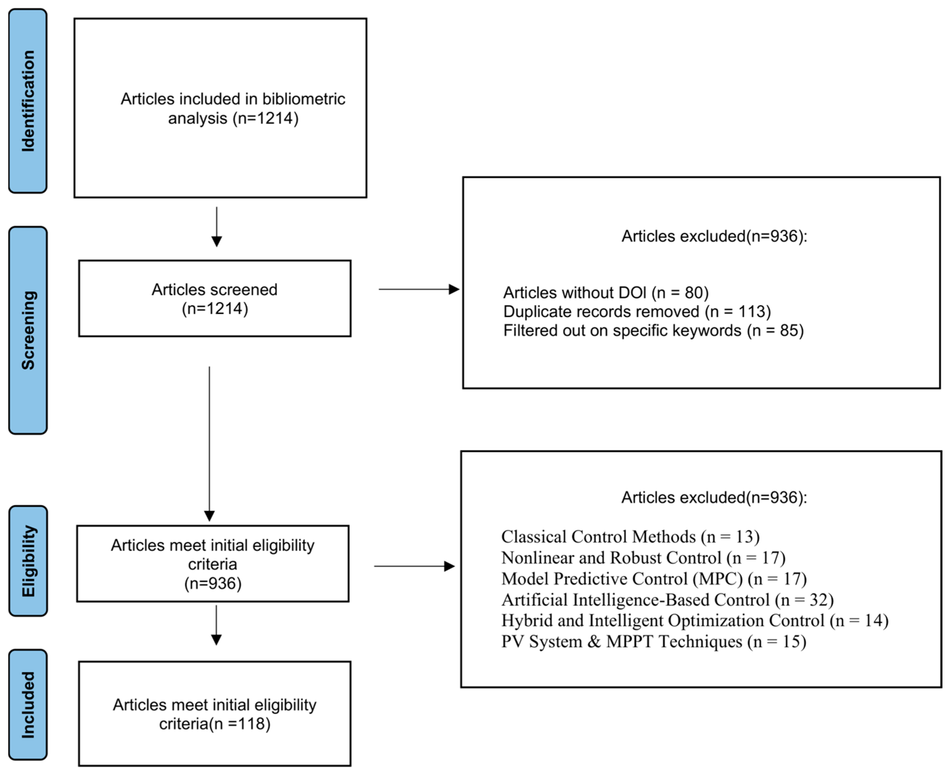 | Exclusion criteria | Book chapters, technical reports, and articles under review. Publications without full access or DOI. Studies unrelated to inverter control. |
