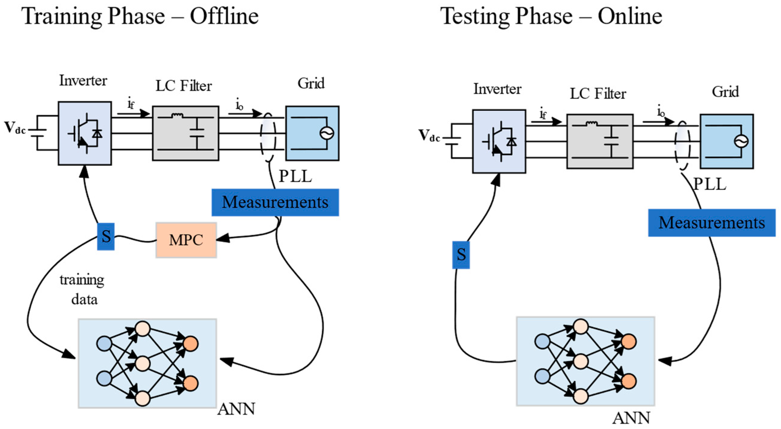 - Bana, P.R.; Amin, M.; Molinas, M. Ann-based surrogate pi and MPC controllers for grid-connected VSC system: Small-signal analysis and comparative evaluation. IEEE J. Emerg. Sel. Top. Power Electron. 2023, 12, 566–578. [Google Scholar] [CrossRef]