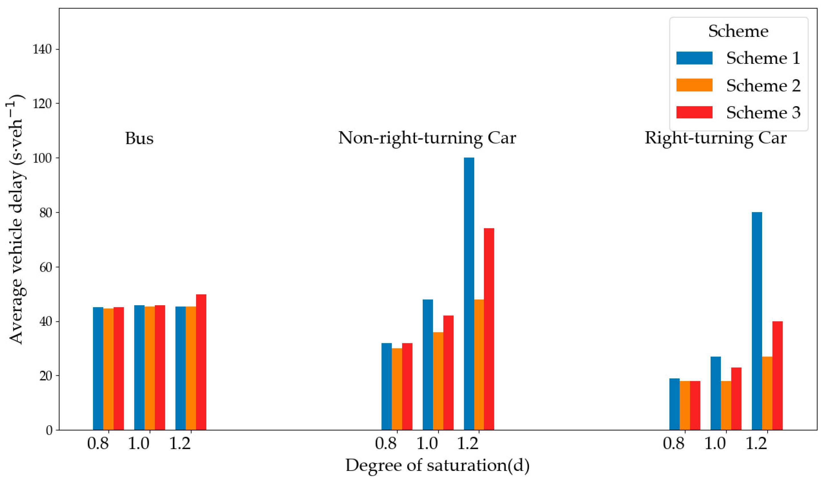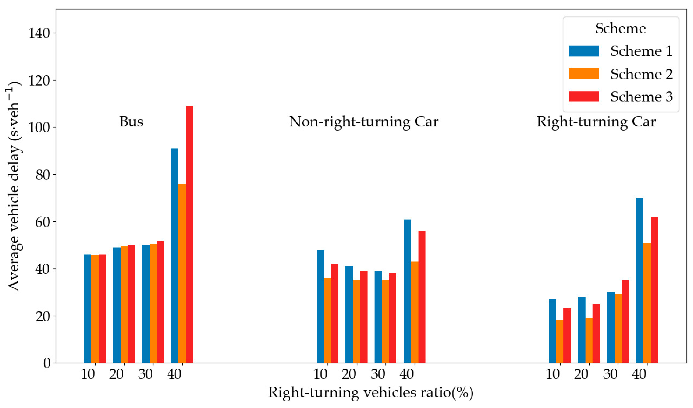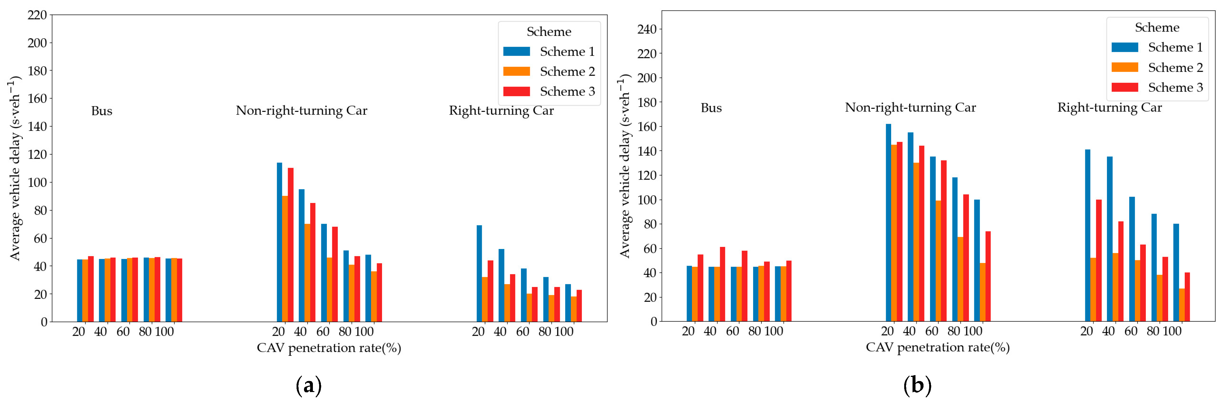 4.3.3. Parametric Analysis Under Different Proportions of Right-Turning Vehicle Flows