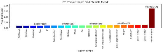 Softmax probability distribution over all support signs for the query sign “Female Friend” using the Qwen2.5VL + MN embedding baseline.