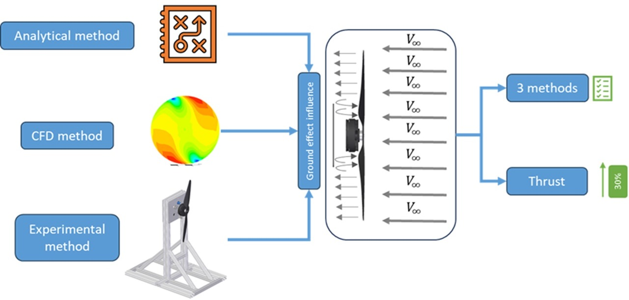 - A series of controlled tests were performed across nine operating points, yielding consistent measurements of thrust, electrical power, and rotational speed. The data demonstrated the quadratic dependency of thrust on rotational speed and confirmed the amplification induced by ground effect.