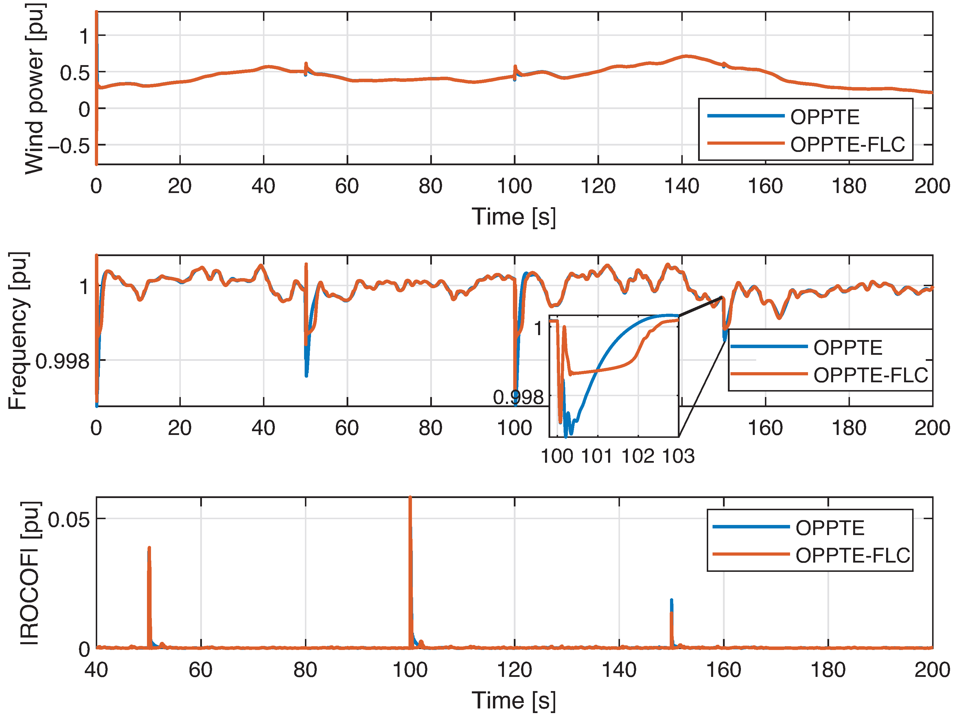 The proposed OPPTE-FLC control strategy is compared against two benchmarks: (i) the OPPTE inertial control method reported in [