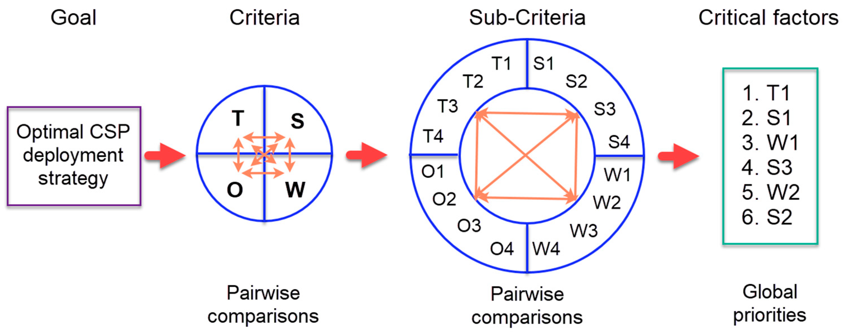 SWOT-AHP model for optimal CSP deployment strategy.
