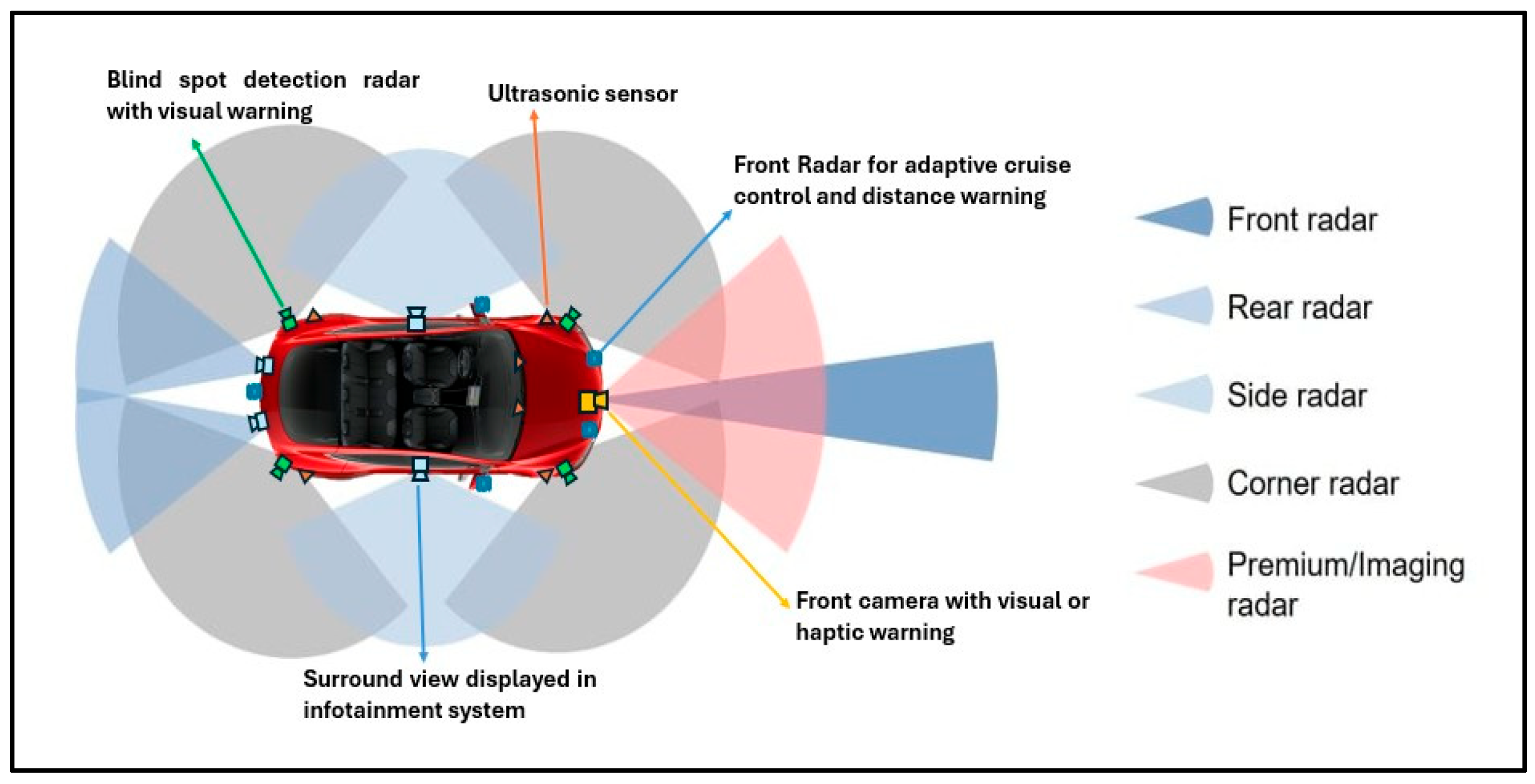 - Shaikh, F. Advance Driver Assistance Systems (ADAS); Technical Report; Technische Universität Chemnitz: Chemnitz, Germany, 2024. [Google Scholar] [CrossRef]