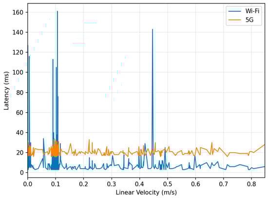 Although Wi-Fi 6 introduces several mechanisms to improve efficiency, its performance remains sensitive to interference and varying network loads. Therefore, for applications that demand consistent low latency and high reliability, such as autonomous robot control, the 5G network represents a promising alternative communication technology. A recent study highlighted that 5G networks provide significantly lower latency and greater transmission stability compared to Wi-Fi, which is crucial for the remote control of robotic systems [].