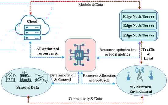 AI and modern mobile networks have a mutually beneficial relationship: AI drives network efficiency, automation and security, while advanced mobile connectivity provides the high-speed, low-latency infrastructure needed to manage AI-enabled applications and services [5]. Machine learning, a subset of AI, plays a central role in modern mobile networks. It is applied in advanced systems and devices to optimise virtual reality and Internet of Things (IoT) services. It also helps ensure quality of service, strengthen security, address synchronisation issues, and support many other critical tasks. AI solutions are resource and energy efficient, and do not require specialized hardware requirements such as high computing power or high resolution to be natively integrated into the network. These solutions, when fully integrated into the network, bring real benefits for 5G and future networks. They help tackle key challenges such as the synchronization of advanced multiple access schemes, network security, traffic analysis, IoT device management, and support for virtual reality applications [6,7,8].