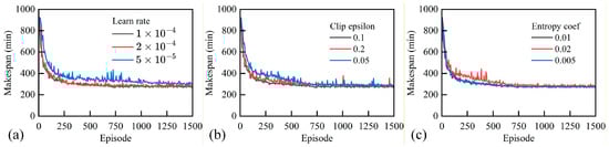 Among various DRL algorithms, Proximal Policy Optimization (PPO) has attracted significant attention due to its excellent stability and sample efficiency [38,39,40]. PPO effectively addresses training instability issues in traditional policy gradient methods by limiting the magnitude of policy updates, making it particularly suitable for industrial scheduling applications with complex constraints [41,42].