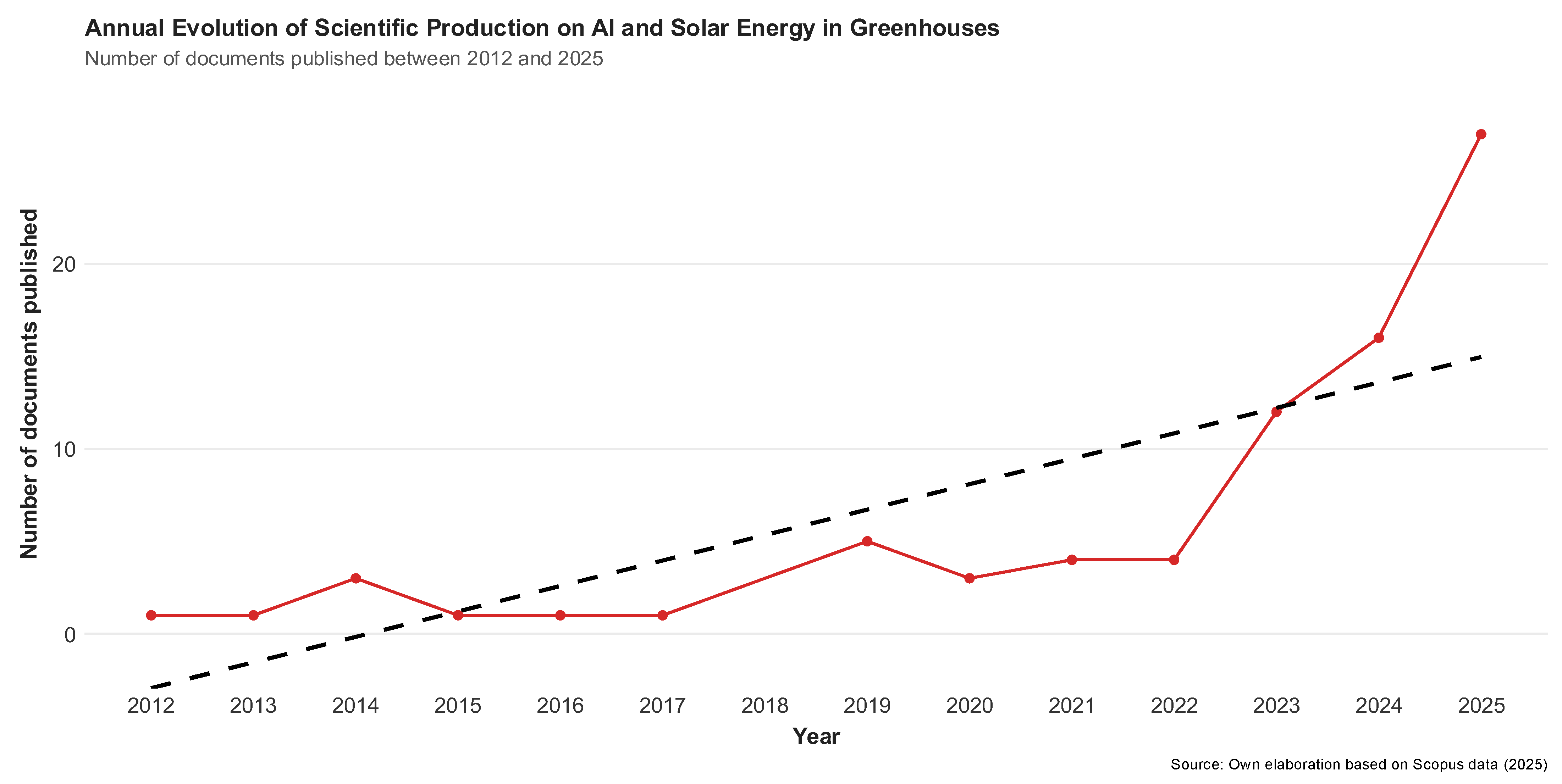 - How has scientific production and collaboration on AI and solar energy in controlled agriculture evolved during 2012–2025, and what bibliometric patterns explain its consolidation?