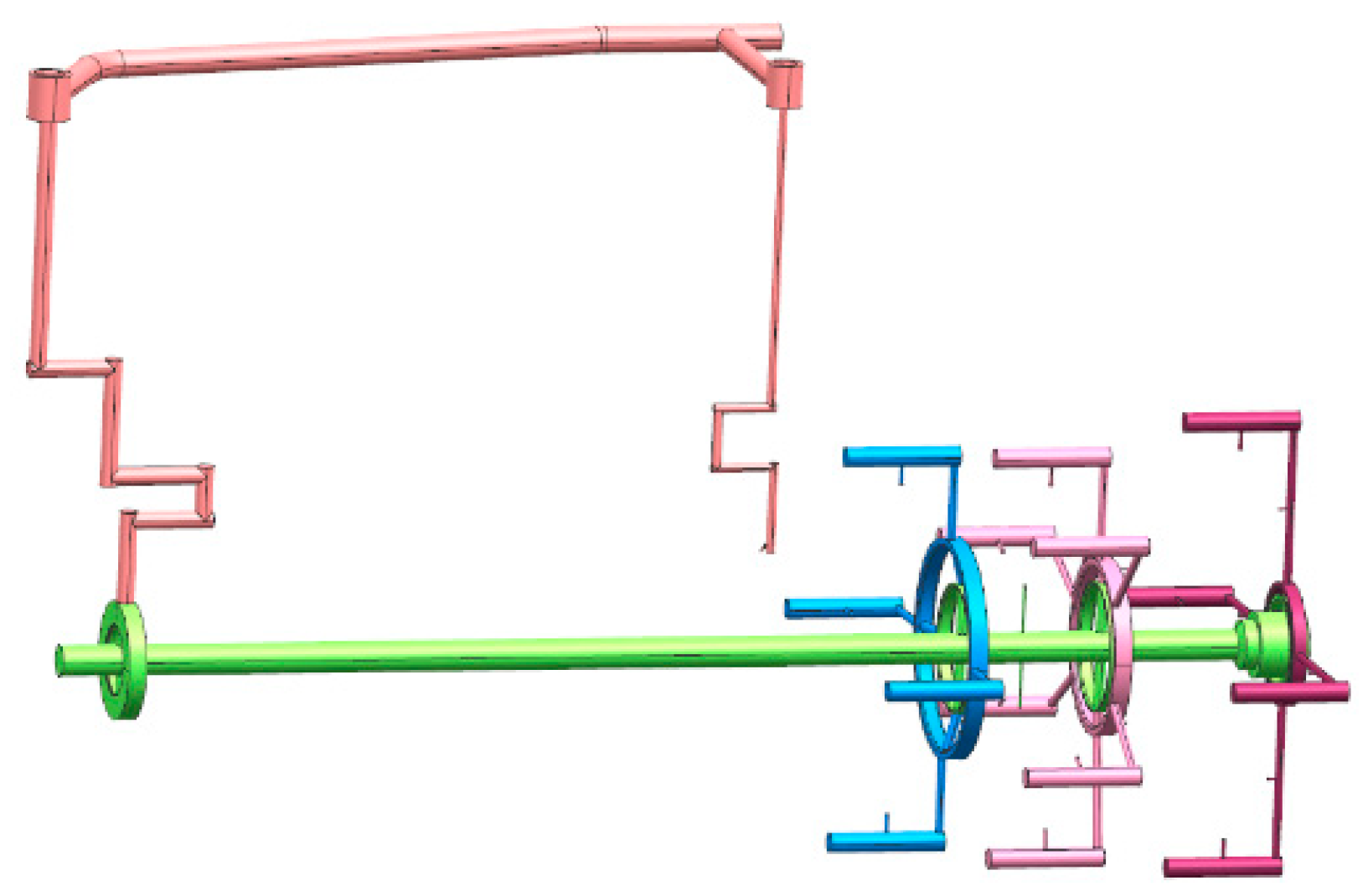 ® to investigate the flow characteristics within the rotating oil passages of a helicopter’s variable-speed transmission. But, the adaptability of its mesh strategy to the complex flow field of the three-stage system has not been verified, and thus it cannot be directly applied to the accurate analysis of the system’s lubrication performance. Hu et al. [