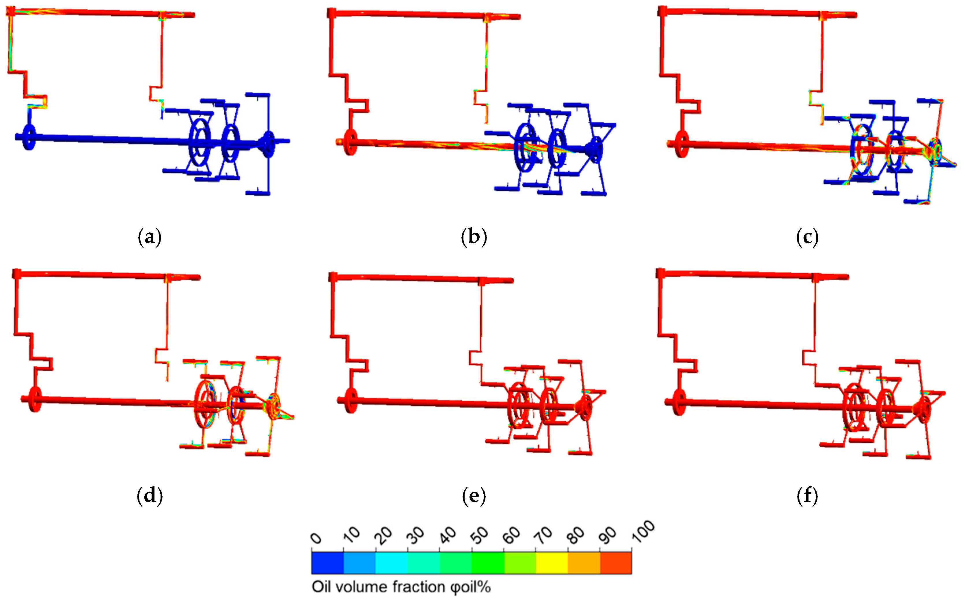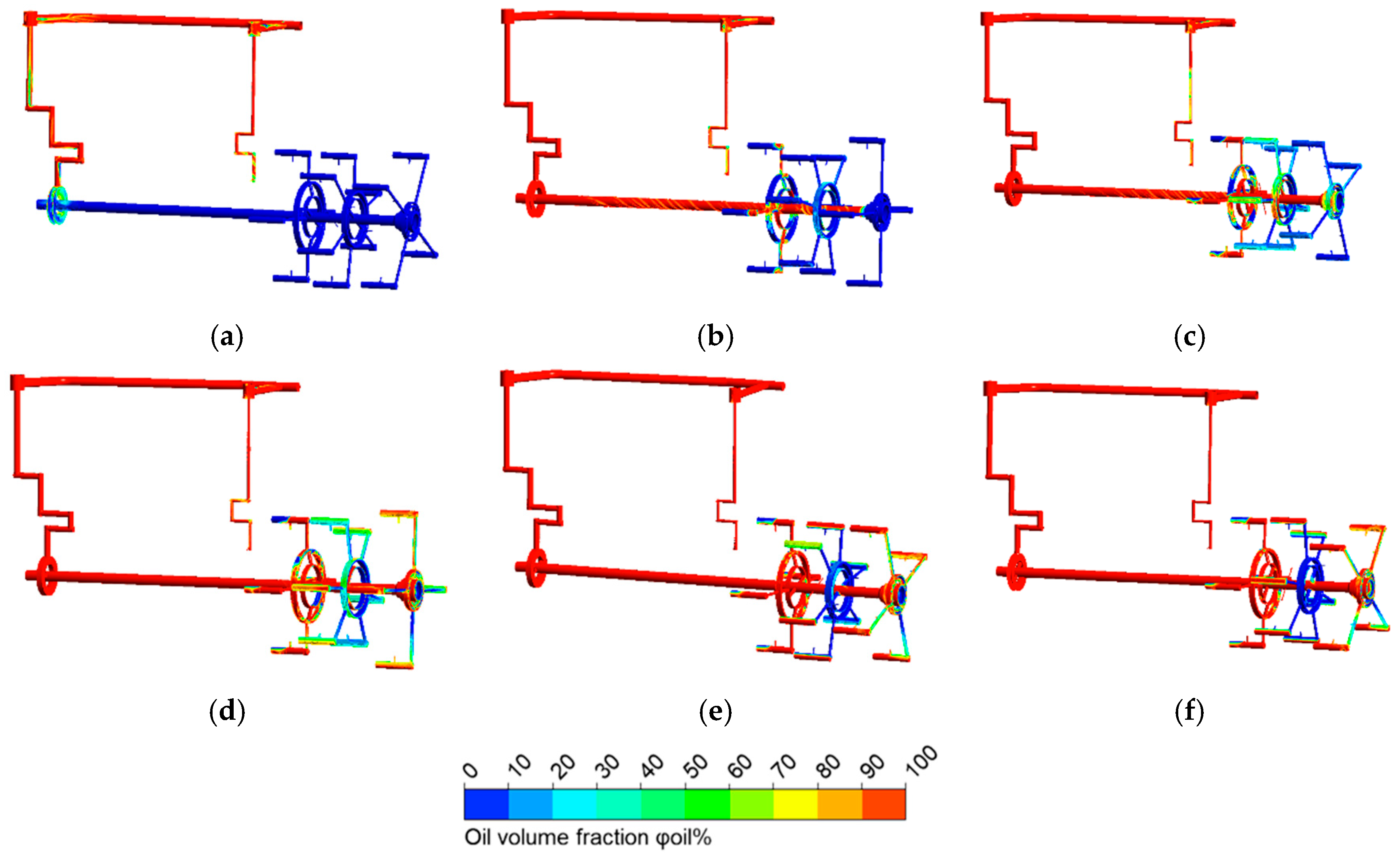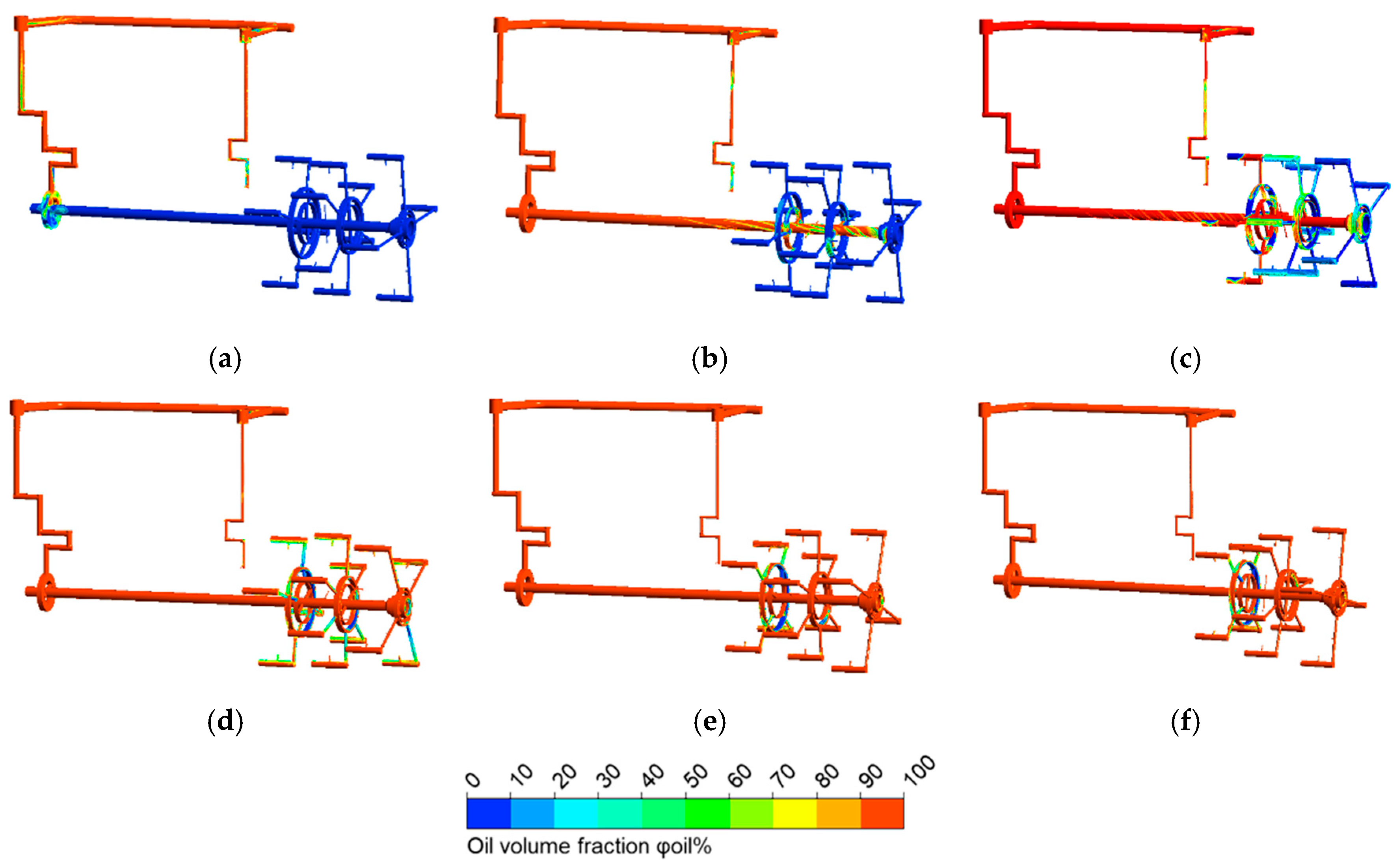 Figure 4 indicates that the oil volume in the second and third planetary stages is greater than in the first stage due to their rotational motion.