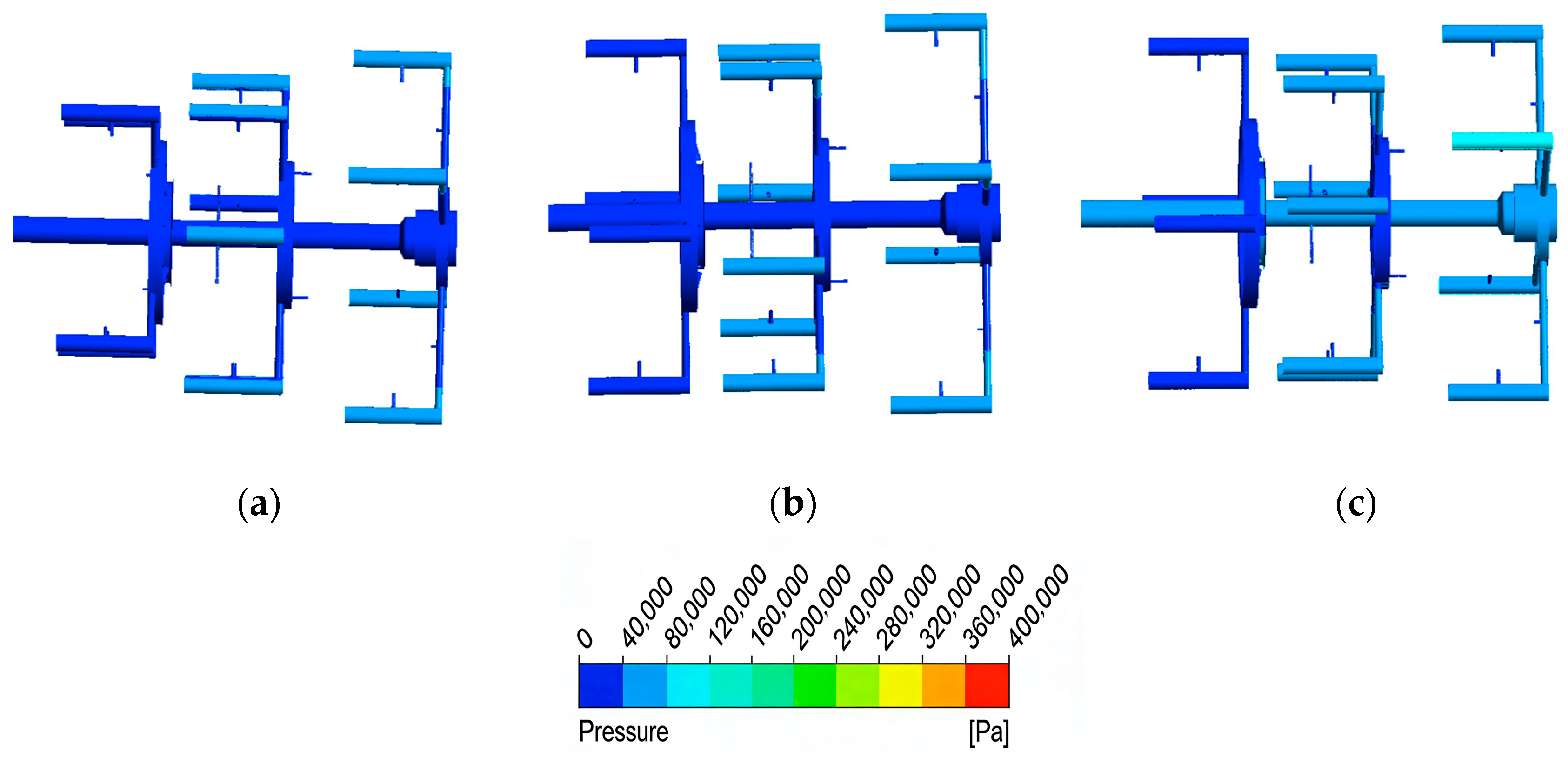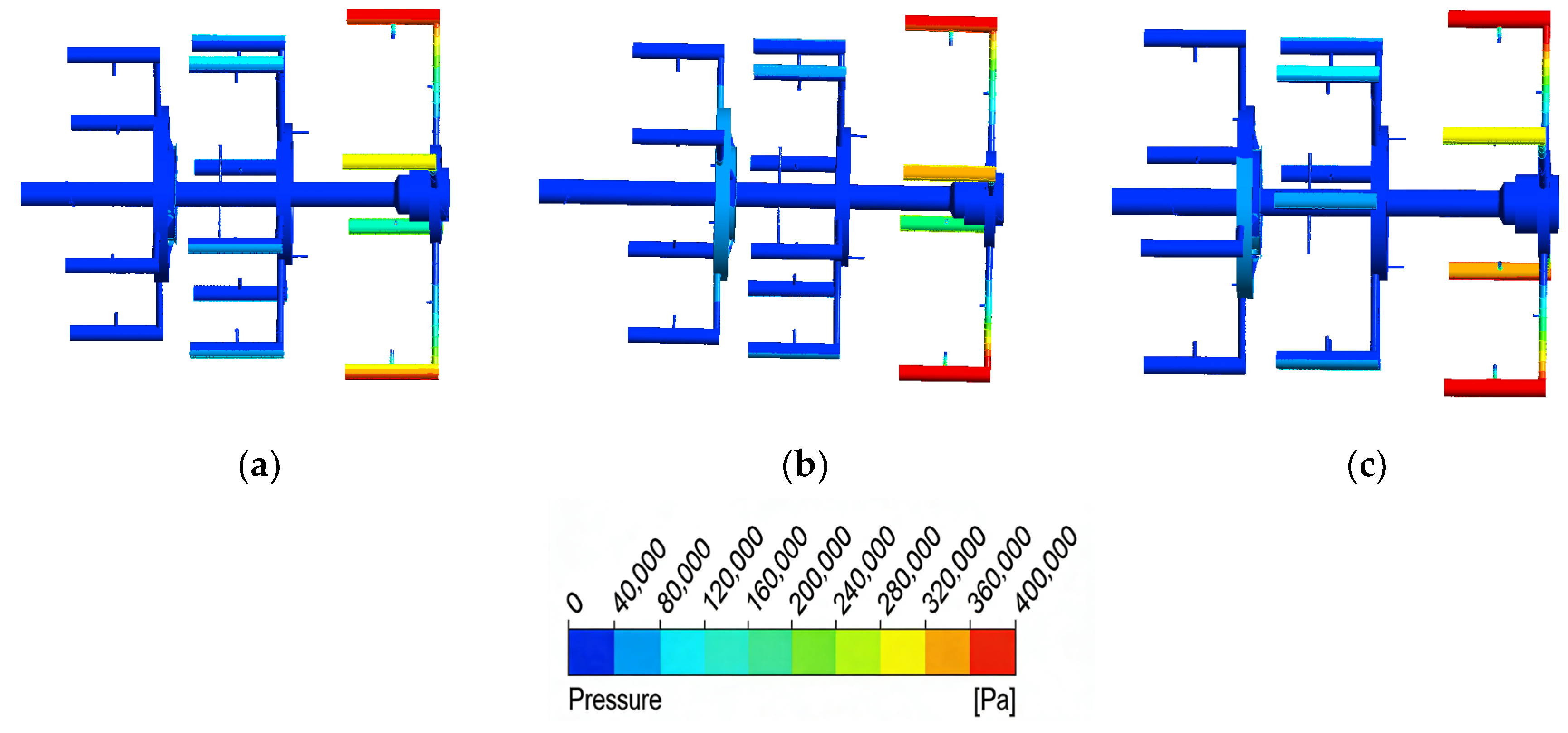 5] investigated the effects of inlet pressure and flow rate variations on the outlet flow characteristics of rotating passages and found that at sufficiently high rotational speeds, the flow developed into an annular pattern. In spite of this, it does not address the flow resistance and perturbations imposed by the branched structure and inter-stage structures on oil distribution within the multi-stage transmission system. Guerrero et al. [
