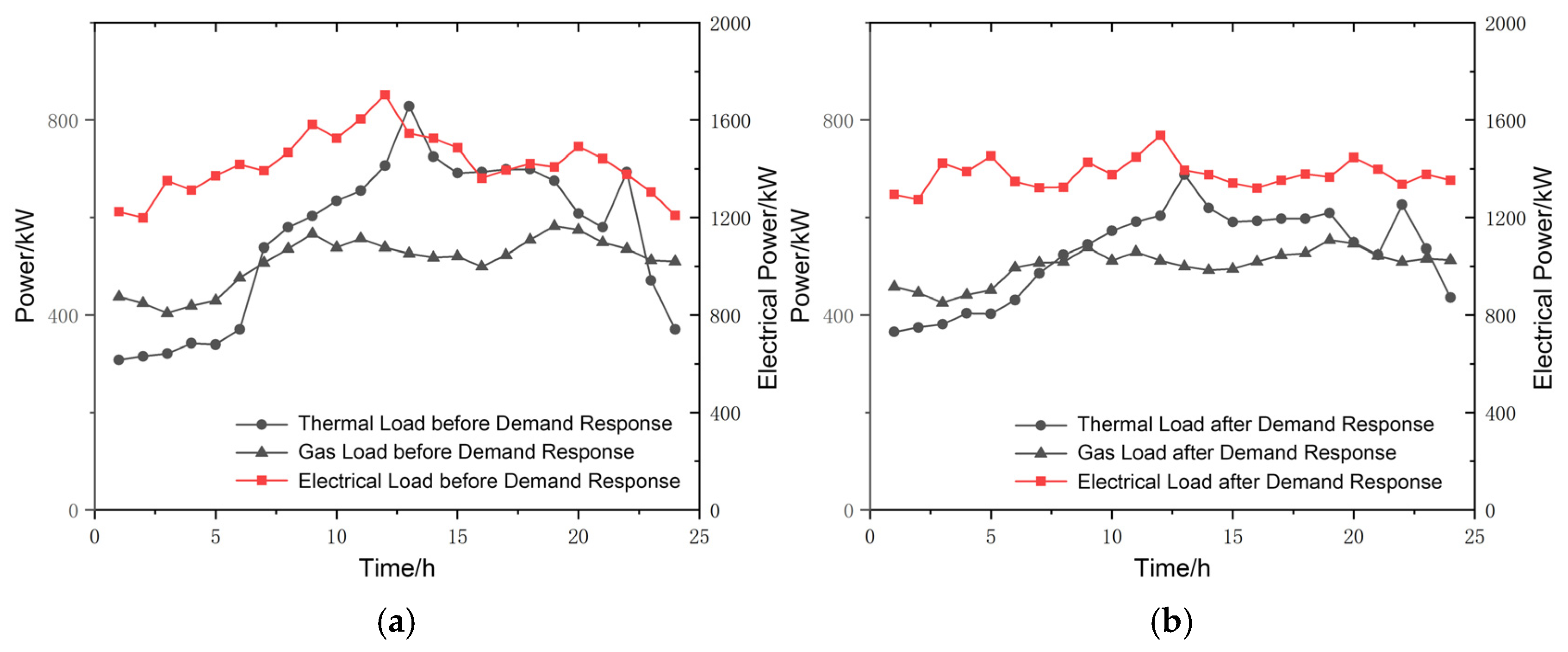 Load curves before and after demand response. (a) Before. (b) After.