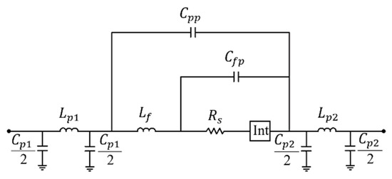 When a commercial packaged diode is acquired from a manufacturer, only the packaged device is available, meaning that measurements are performed on a single structure [2,5,6], and its parameters are obtained by curve fitting. In [2], diode packaging is modeled using a single inductor and a capacitor. In [5], only the total packaging capacitance is extracted from the measurements, while the remaining parameters are optimized by fitting the measured S-parameters. In [6], a numerical optimization method is applied to determine the parameters by curve fitting. Furthermore, the information provided by the manufacturer often includes limited data, which is tested under highly constrained conditions. For instance, if radiofrequency (RF) measurements are performed, the frequency range is typically limited to a few gigahertz (GHz), making it difficult to extrapolate the data to higher frequencies. Rarely is the electrical model of the packaging provided.