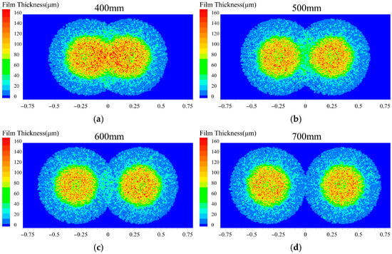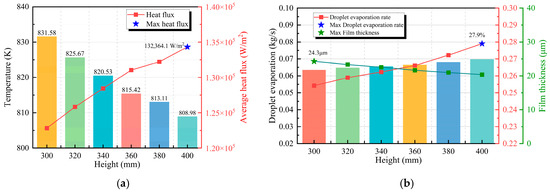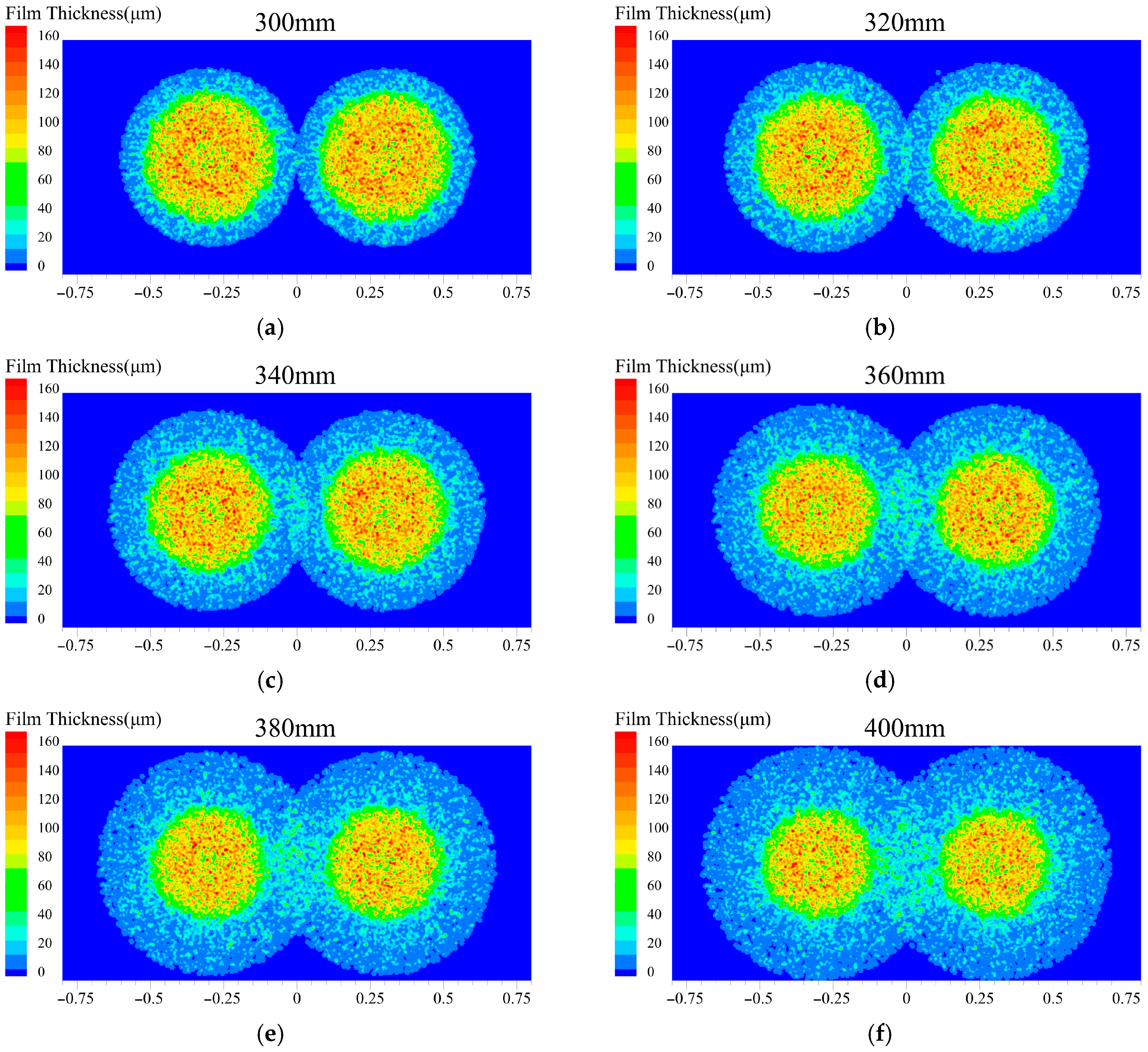 21] investigated the effects of spray chamber pressure, spray height, and inclination angle on heat transfer performance. They found that the liquid film thickness on the cooling surface exhibits a W-shaped distribution, with thinner films providing better cooling performance and the minimum surface temperature occurring at a film thickness of 5 µm.