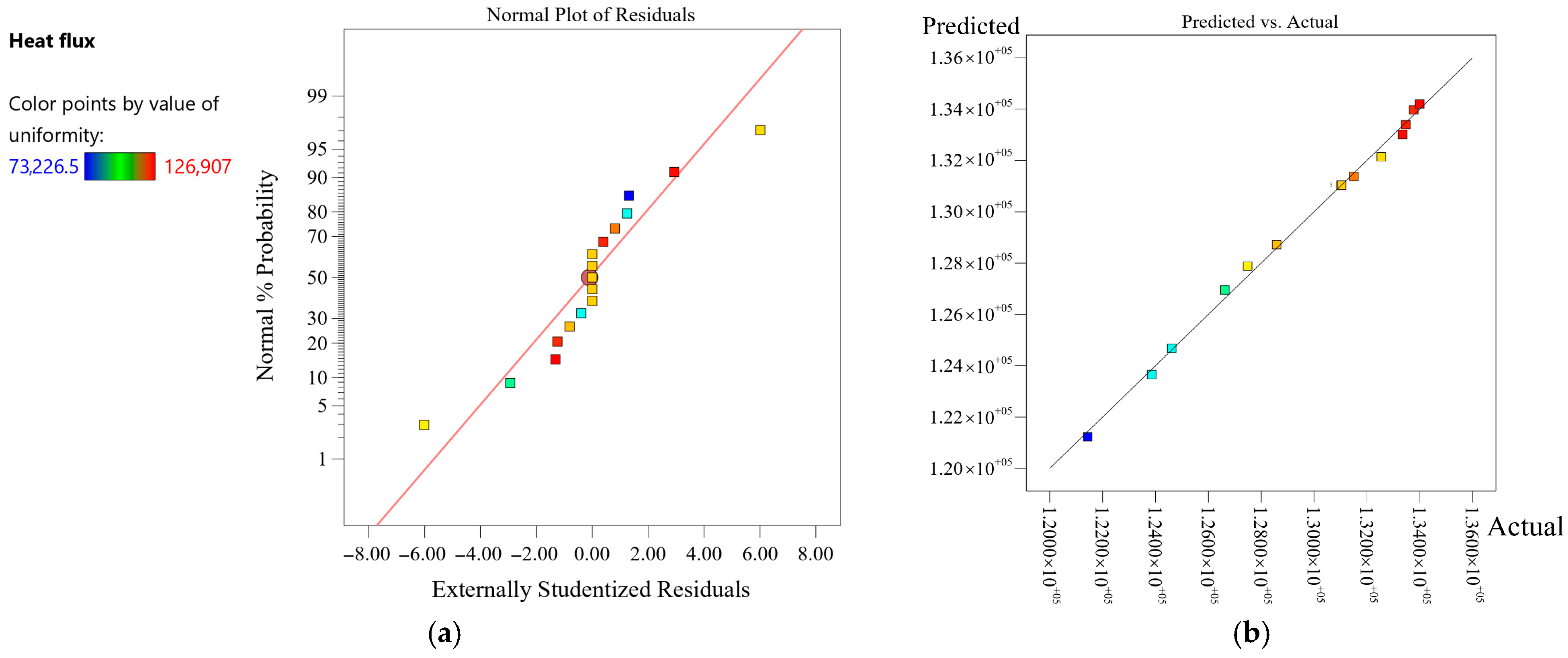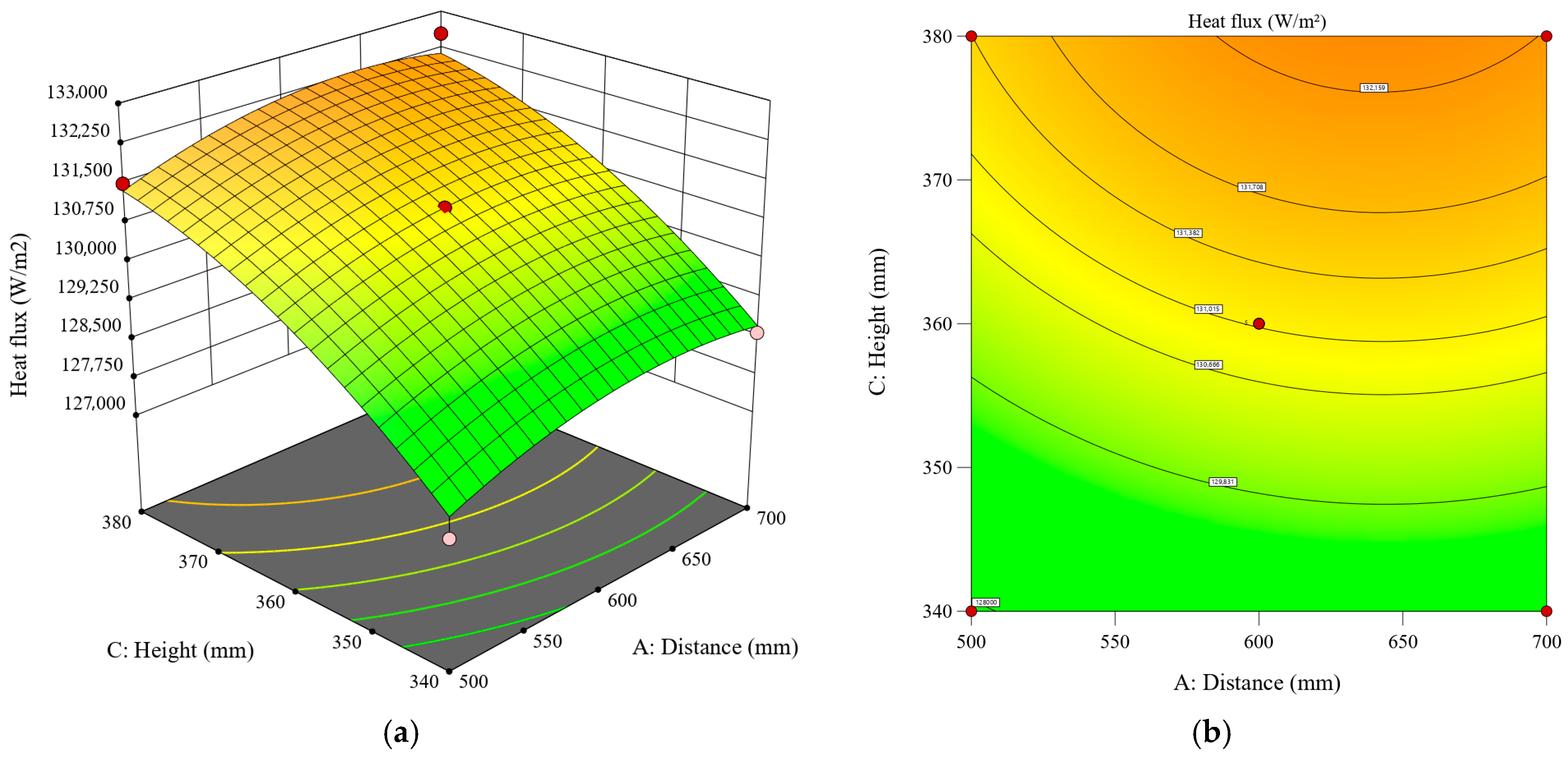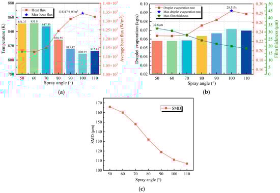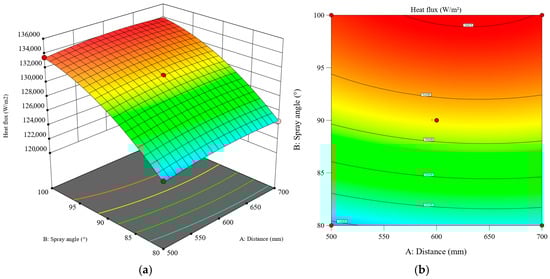 26]. Numerical simulations were employed to examine the effects of spray angle, nozzle distance, spray height, and cooling water mass flow rate on the cooling efficiency. The influence of spray parameters on heat transfer performance is demonstrated through cooling surface heat flux and liquid film thickness. Response surface methodology (RSM) was used to evaluate the effects of key spray parameters and reveal their synergistic enhancement effects. Furthermore, multi-objective optimization design (MOD) based on RSM was conducted, yielding an optimal combination of spray parameters.