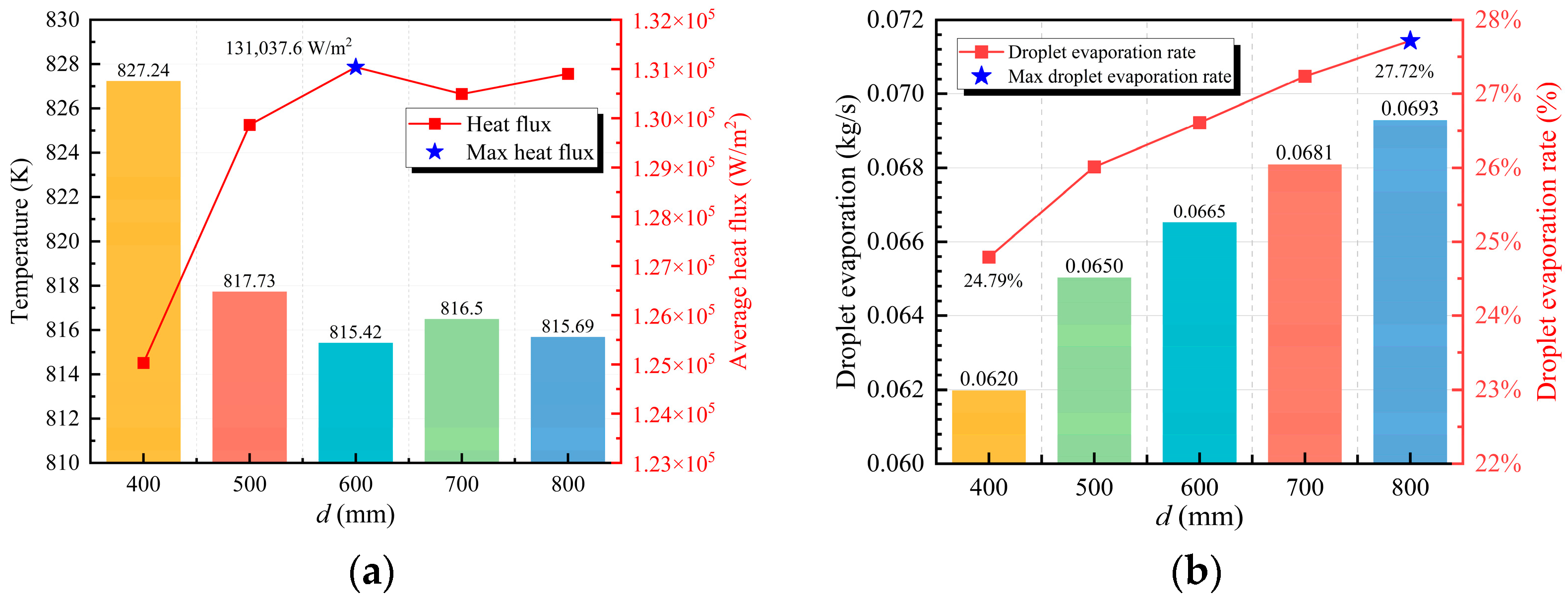 16] reported that smaller nozzle orifices improve droplet size and velocity. However, under high heat flux, stronger vaporization reduces heat-transferring droplets, potentially restricting cooling effectiveness.