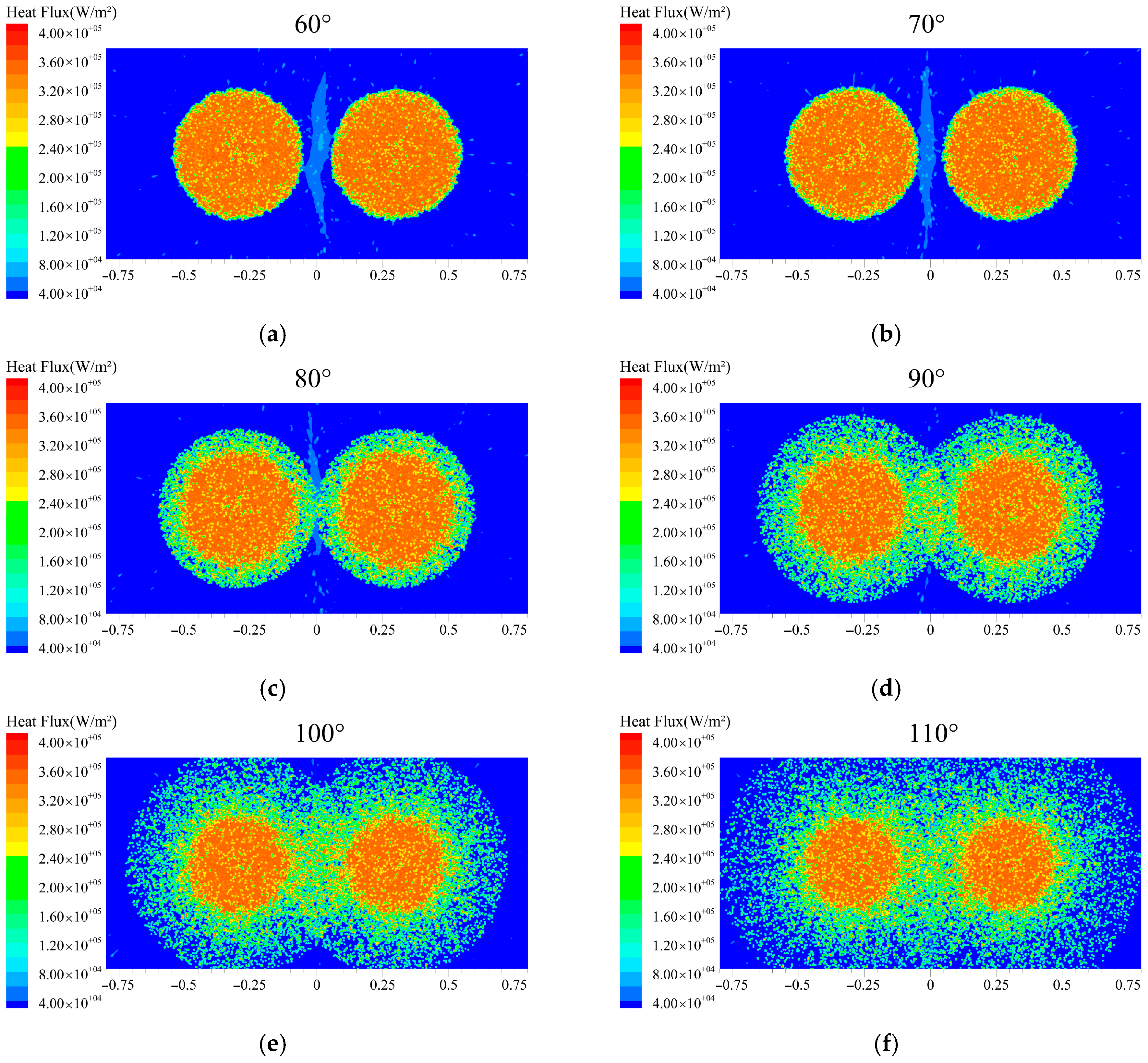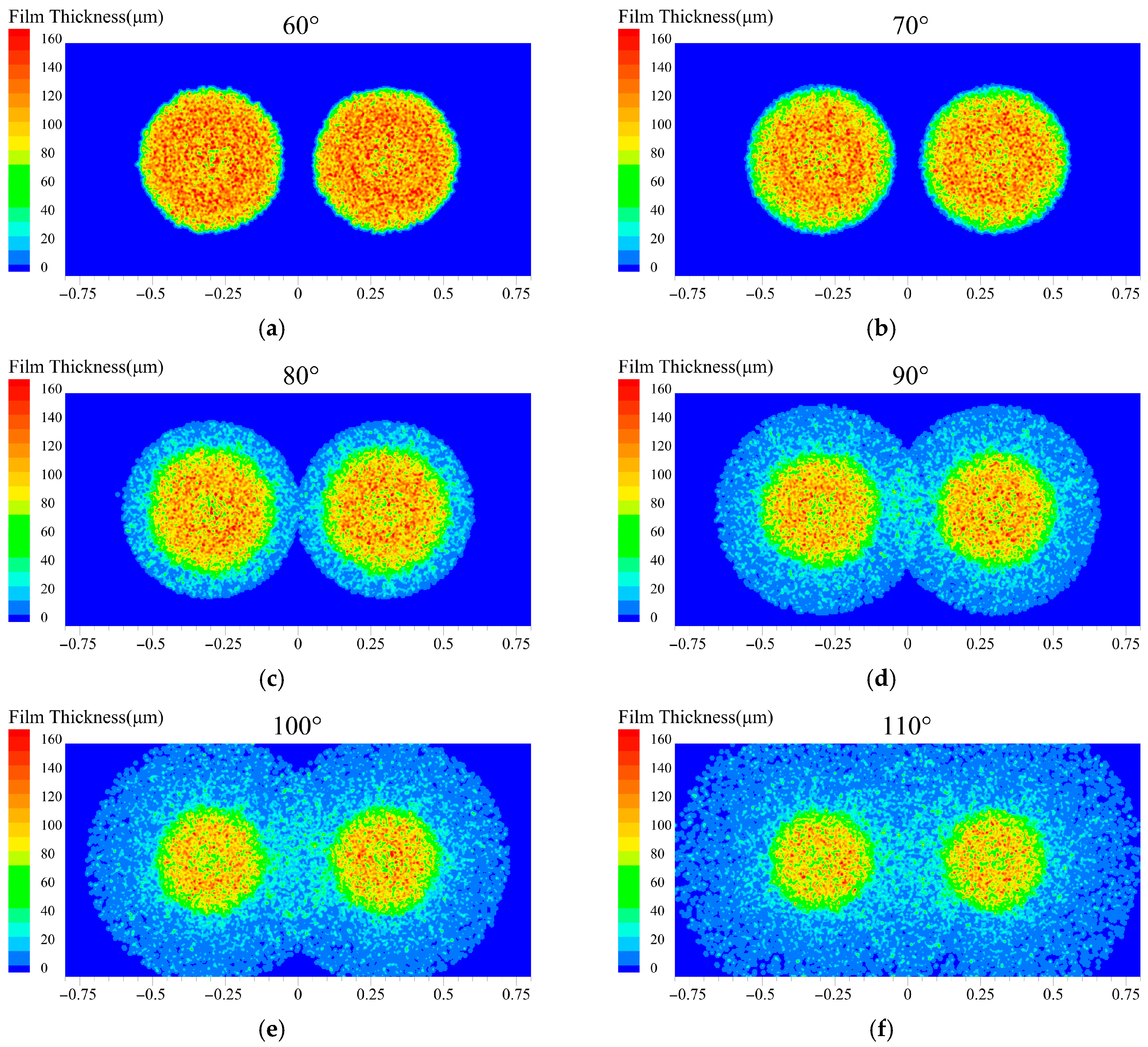 23] experimentally studied the effect of different nozzle inclination angles in a 2 × 3 water spray nozzle array on cooling a nuclear reactor vessel. Results indicated that at an inclination angle of 60°, the uniformity of liquid film coverage was significantly improved and the surface temperature was notably reduced. Xie et al. [