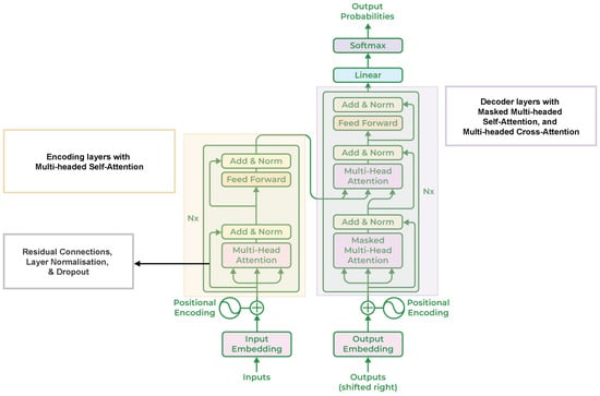 - Vaswani, A.; Shazeer, N.; Parmar, N.; Uszkoreit, J.; Jones, L.; Gomez, A.N.; Kaiser, L.; Polosukhin, I. Attention Is All You Need. arXiv 2017, arXiv:1706.03762. [Google Scholar]