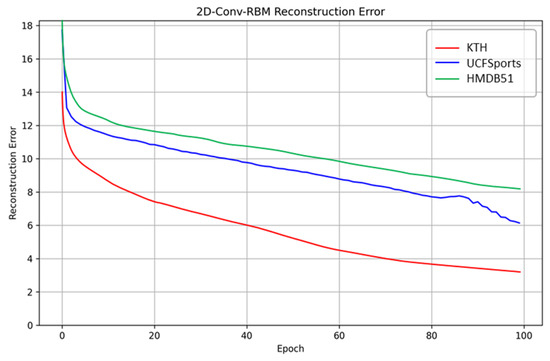 To demonstrate the effectiveness of the proposed model, its performance was compared against several baseline methods. These included 3D CNNs, known for their ability to capture spatial–temporal features; LSTM-based architectures, effective in modeling temporal dependencies; the I3D model, which extends 2D CNNs into the spatial–temporal domain by inflating convolutions; and traditional 2D RBMs, which focus solely on spatial feature extraction and transformer-based models, such as VideoMAE, which leverage self-attention mechanisms to capture global spatial and temporal dependencies. These comparisons highlighted the advantages of the proposed hybrid architecture in combining efficient spatial feature extraction with Conv-RBM and robust temporal modeling with LSTM.