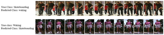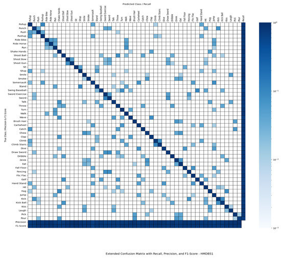 The field of video-based human action recognition has garnered significant attention due to its wide-ranging applications in domains such as surveillance, sports analytics, human–computer interaction, and healthcare monitoring [1,2]. Recognizing human actions in real-time from video data is challenging because of the high dimensionality of video frames, complex motion patterns, and the need for effective spatial–temporal data understanding [3]. Traditional approaches using handcrafted features often fail to capture the intricate spatial–temporal relationships inherent in human actions [4].