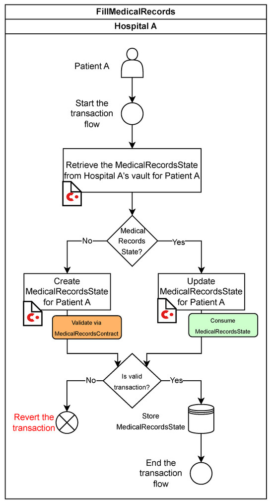 FillMedicalRecords flow, that is, several patients registered their medical history simultaneously in a given node as shown in