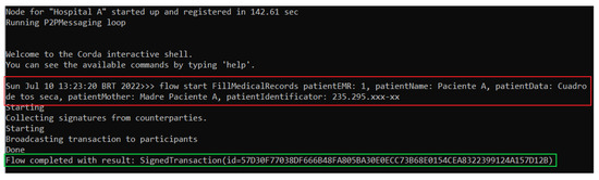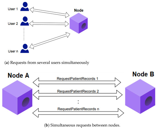 RequestPatientRecords was executed several times, that is, the medical history of a given patient stored in Hospital A’s node was requested several times by Hospital B’s node as seen in