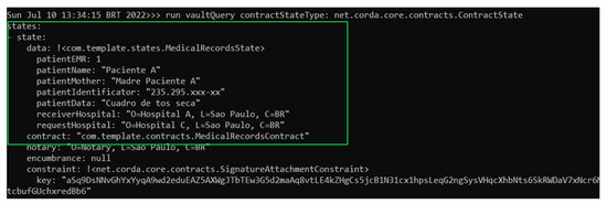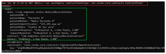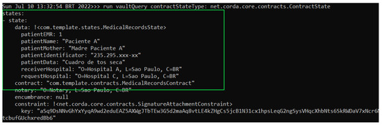 MedicalRecordsState, a query was made on their database or vault. The result of this query can be viewed in the green box of