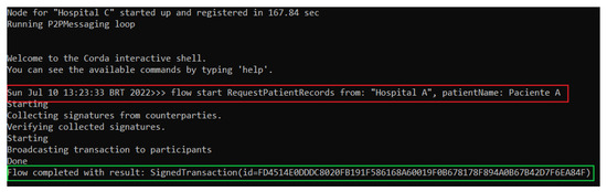 RequestPatientRecords flow is executed on Hospital C’s node, passing as parameters the