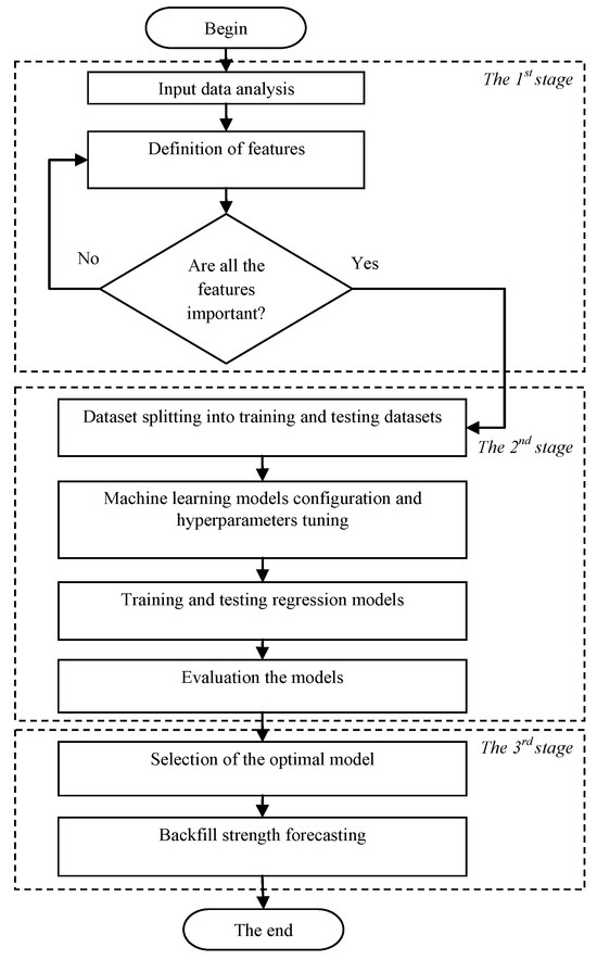 Flowchart of the machine-learning application for backfill strength forecasting.