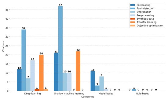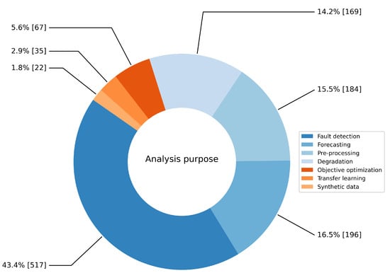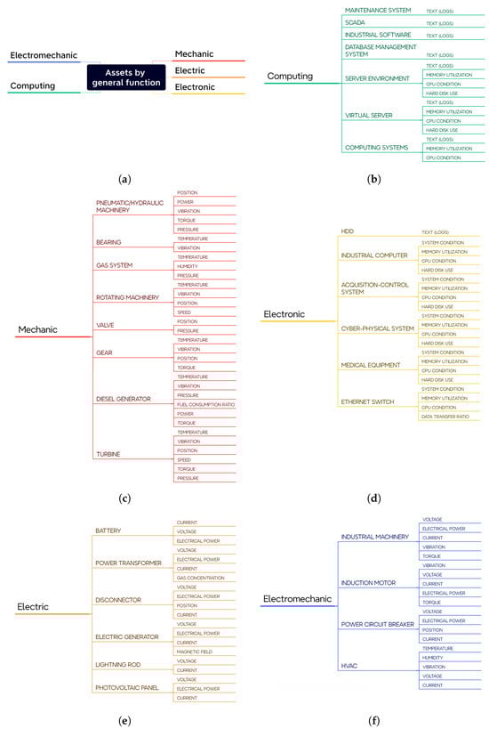Interesting reviews and surveys explore the field of DM with a focus on maintenance optimization, fault identification, and prognosis such as [,,,,,,,,,,,,]. Regarding studies with a taxonomy presentation of data science and analytic applications in industrial maintenance, the most comprehensive papers to date are [,,,,]. Nevertheless, their focus was based only on mechanic and electromechanic assets.