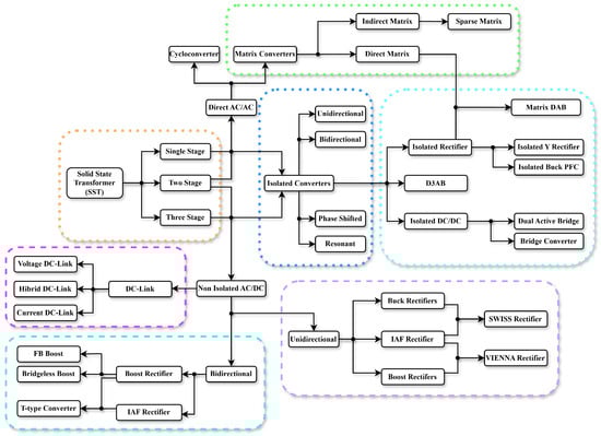 Classification of SST converter topologies by functionality and their derivation based on the number of conversion stages.