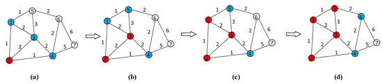 Figure 5d, the number of clustered vertices has exceeded the threshold, and the clustering process ends.