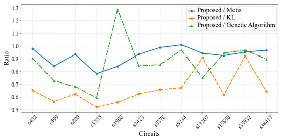 Subsequently, the adjacency matrix M is converted into the Compressed Sparse Row (CSR) storage format. The array adjncy stores the adjacent vertices for each vertex, and the related indices are stored in the array xadj, which records the starting position of each vertex’s adjacency list. The array adjwgt contains the corresponding edge weights, which represent the number of connection signals. The array vwgt contains the weight of each vertex, which represents the number of vertices.