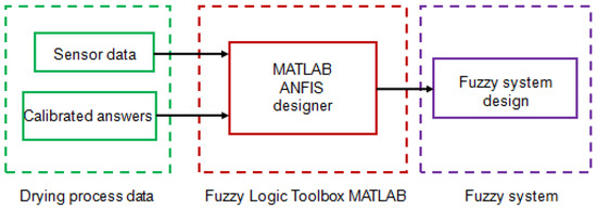 The design of an artificial intelligence system based on fuzzy logic begins with defining the input and output data. Using this information, the parameters of the fuzzy system are calculated to align with the responses generated by the Adaptive Neuro-Fuzzy Inference System (ANFIS) in MATLAB. In this study, fuzzy logic regression was employed to calibrate the temperature and weight sensors used in the dehydration process. Input and output data from the sensors were collected using manual reference systems, including a calibrated load cell and a resistive temperature detector (RTD). These data serve as the foundation for designing the fuzzy system, as shown in Figure 3.