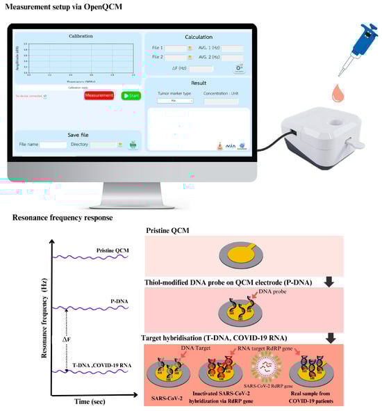 - Suvanasuthi, R.; Cheewasatheinchaiyaporn, T.; Wat-aksorn, K.; Promptmas, C. Nucleic Acid Amplification Free-QCM-DNA Biosensor for Burkholderia Pseudomallei Detection. Curr. Microbiol. 2023, 80, 376. [Google Scholar] [CrossRef]