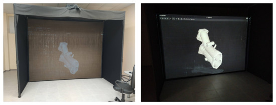 The software that was used to visualize the 3D objects for workstations 2 and 3 was the same—3Dviewer.net—to ensure uniformity and ease of use. In order for workstation 1’s stereoscopy effect to work, its own proprietary 3D viewer was used (Studio A3, version 5.2.0). Other options included Blender 3.5.0, AutoCAD 24.0, and SolidWorks 2024, but their complexity and the plethora of functionalities they provide were evaluated to introduce too much noise in the experiment results, so a simple solution was found. Microsoft Paint 3D was also considered, as it provides an effective method to mark the defects directly on the object in its native 3D view. However, workstation 1’s stereoscopy did not work there. This necessitated the use of projections printed on paper for the users to mark their results.