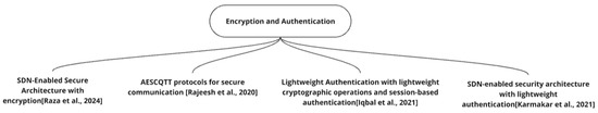 Recent advancements in Internet of Things (IoT) security have introduced novel methodologies to address vulnerabilities in interconnected devices. This paper examines four key studies [31,32,33,34] that propose innovative approaches to enhance authentication, encryption, and overall security architecture in IoT environments, analyzing their methodologies and critiquing their efficacy. The mind map in Figure 4 shows the list of research papers discussed in the section.